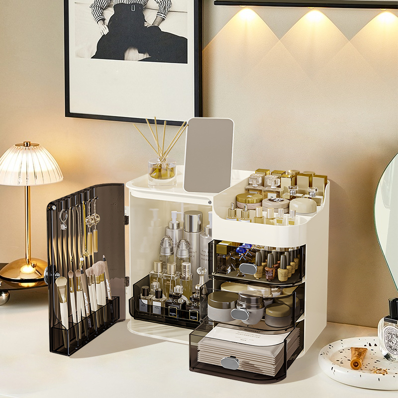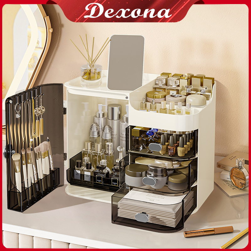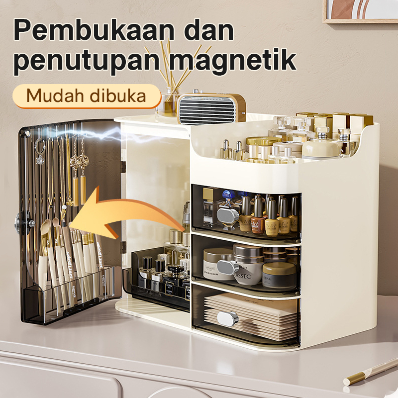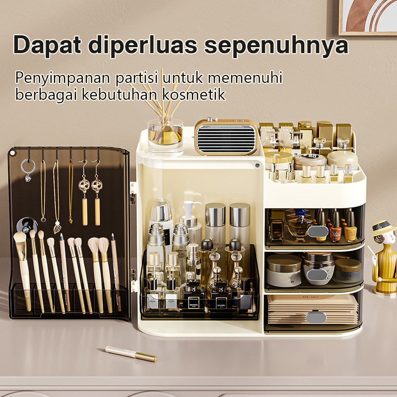 Rak Makeup Tempat Skincare Kotak Penyimpanan Rak Kosmetik tertutup Serbaguna Perlindungan Kosmetik Premium Plastik Semi