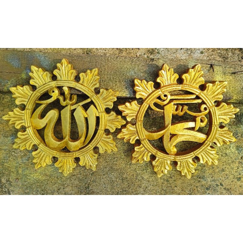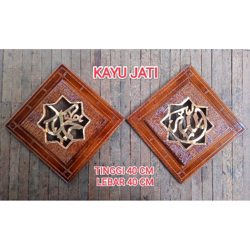 HIASAN DINDING TULISAN KALIGRAFI ARAB KAYU ALLAH MUHAMMAD