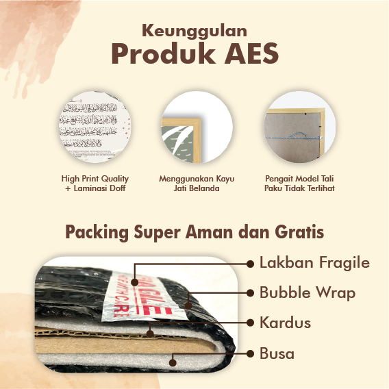 AES Kaligrafi Ayat Kursi Aesthetic Frame Jati Belanda 40x80 KS039 - Pajangan Hiasan Dinding Jumbo Besar Dekorasi Ruang T