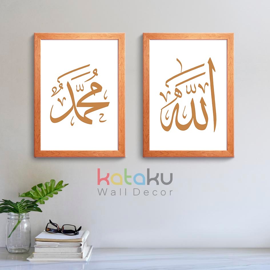 Wall Decor Islami Kaligrafi Tauhid Allah Muhammad Hiasan Dinding Minimalis Modern Frame Kayu 3 Set