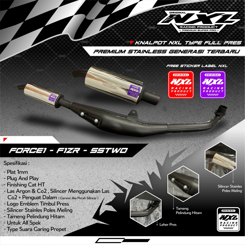 KNALPOT RACING FIZR/FIZ/FORCE1 PREMIUM FULL PRESS ORIGINAL NXLRACINGPRODUCT GEN 2