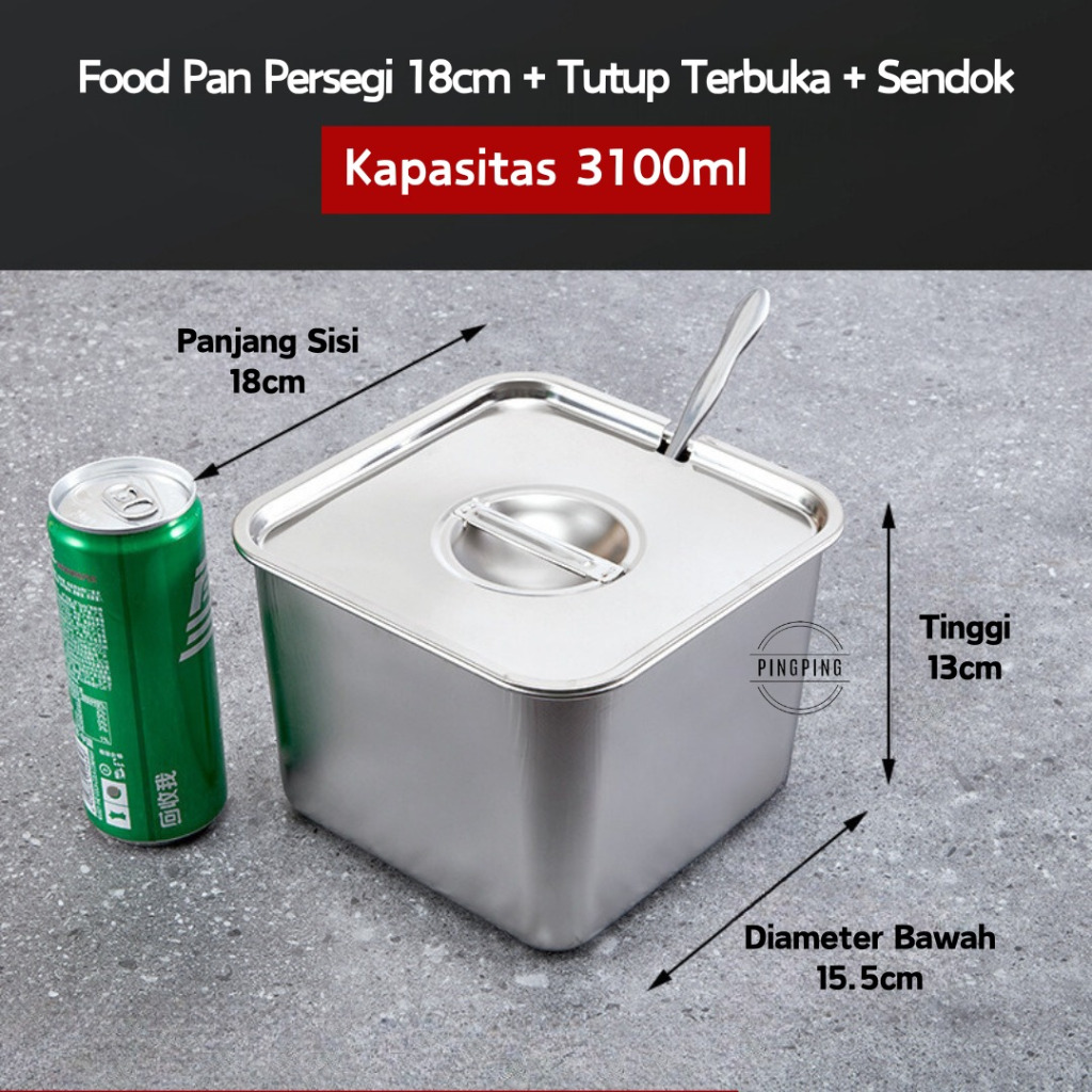 Box souce Stainless Steel Persegi + Tutup / Food Container Saus Stainless / Food Box Kontainer Stainless / Tempat Penyim
