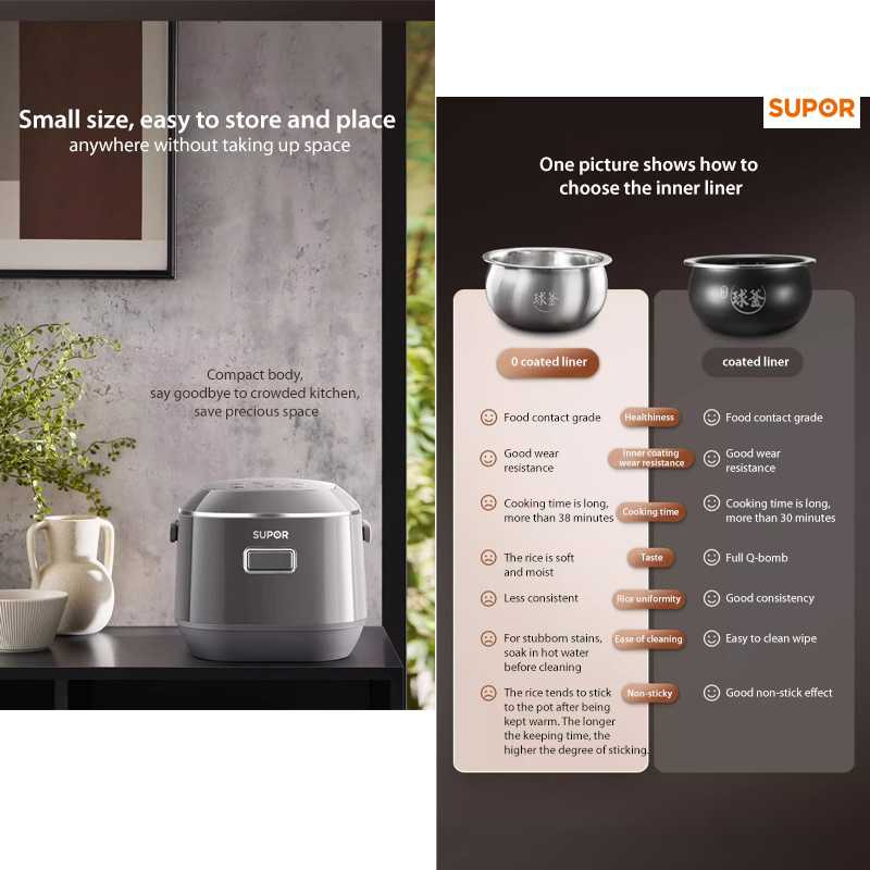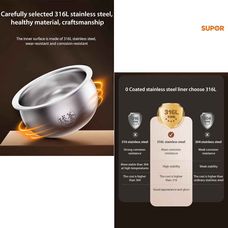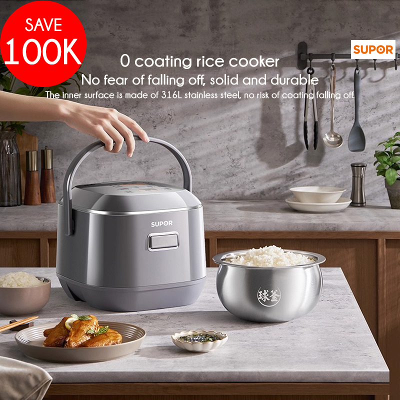 Pre-order SUPOR uncoated rice cooker mini small 2 liters 1-3 people ball pot 316 stainless steel 0 coating liner pot