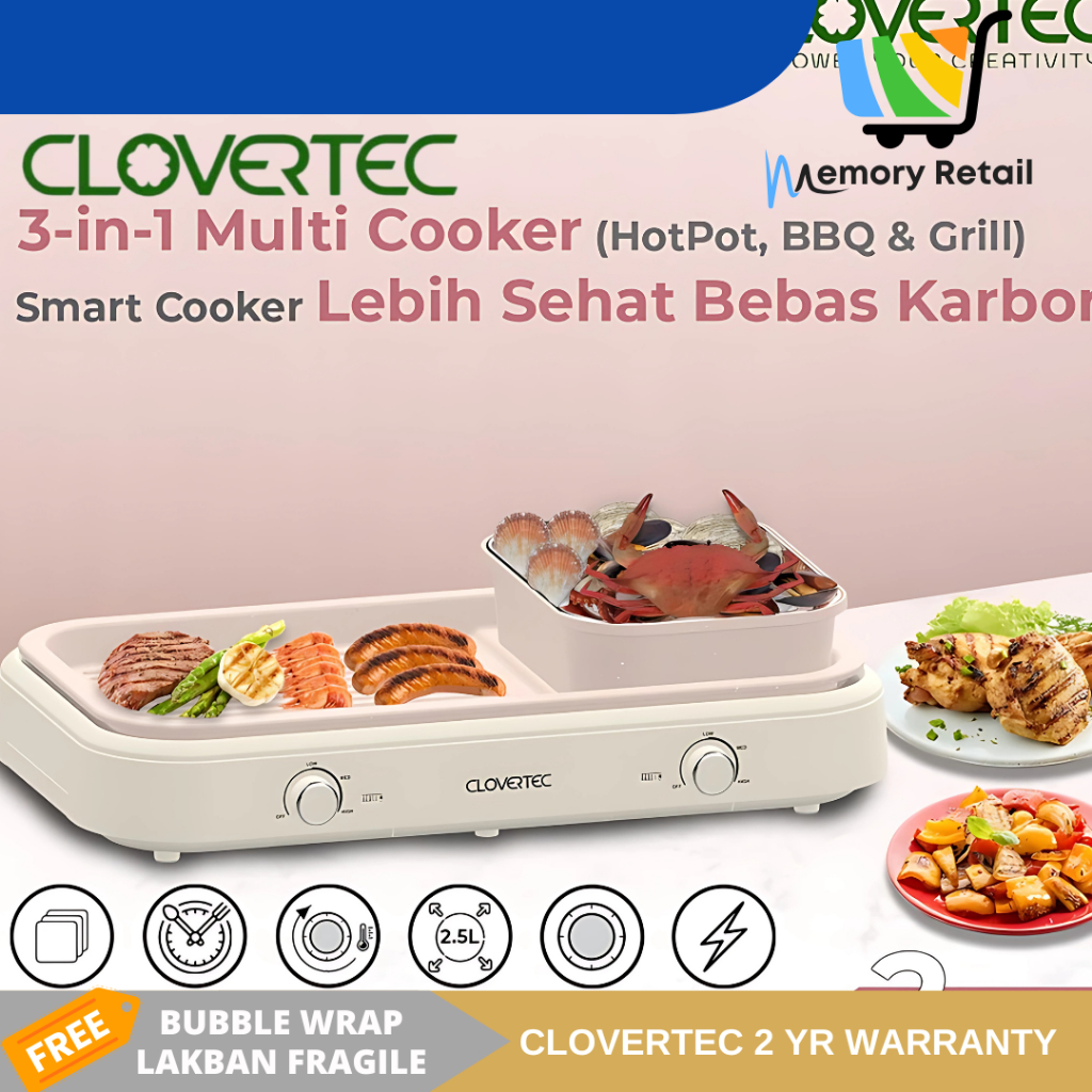 CLOVERTEC Multicooker 3 in 1 Hotpot Grill Low Watt Pemanggang Praktis Aesthetic Hadiah Ultah Pernikahan