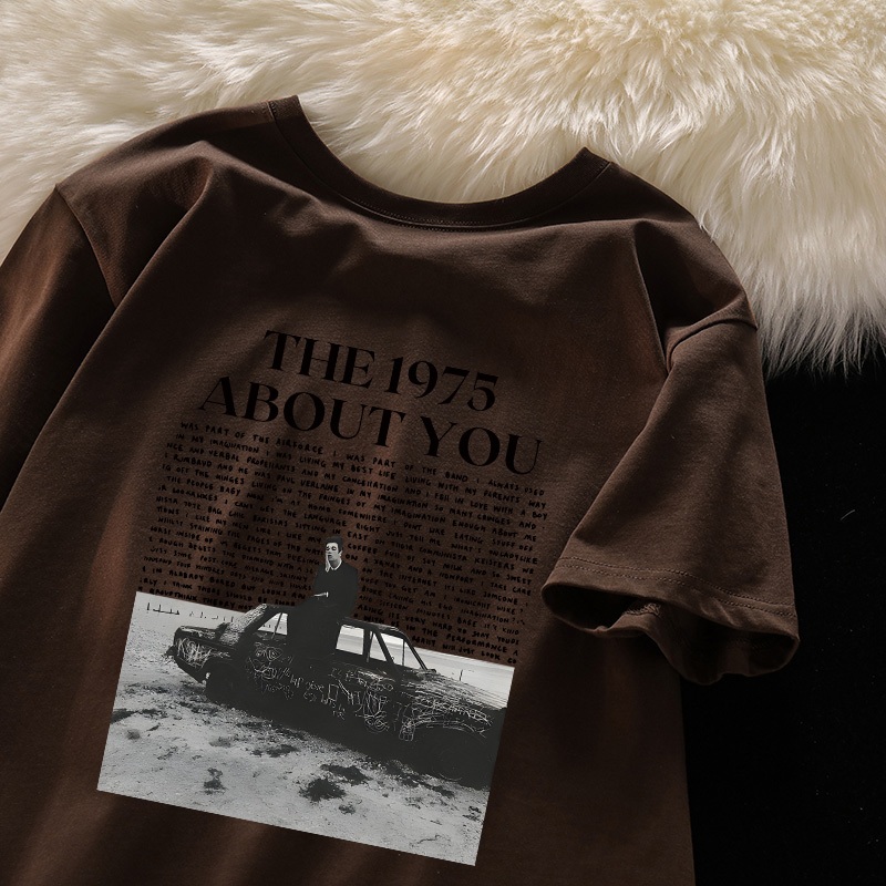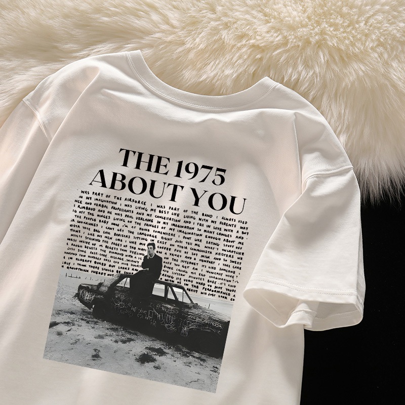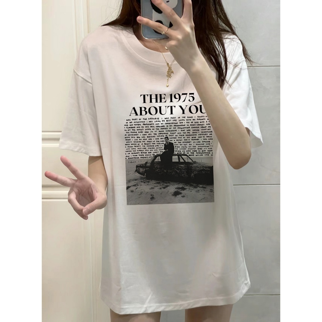 Kaos t shirt oversize lengan pendek Kaos The 1975 ABOUT YOU katun murni Retro style wanita top