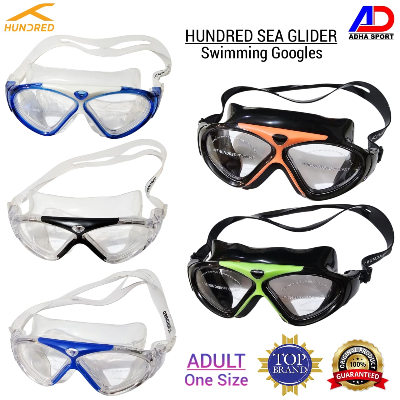 ORIGINAL Hundred Kacamata Renang Snorkling Swimming Googles Sea Glider Unisex HDAL-5M115