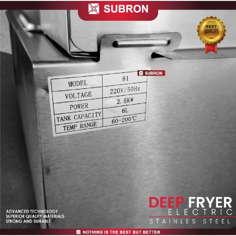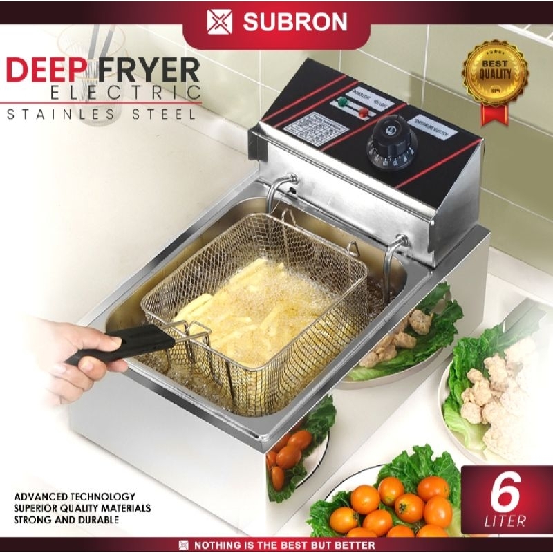 Electric Deep Fryer SUBRON DF6L Premium Stainless Steel 6Lt + Keranjang Saringan Minyak