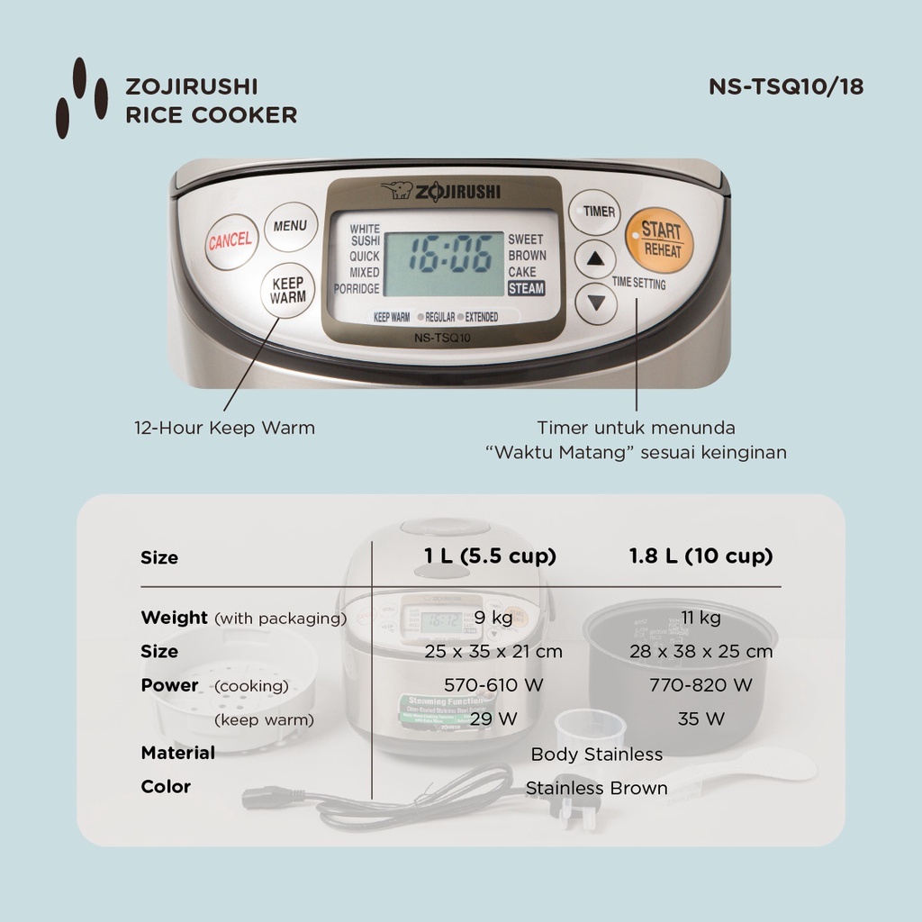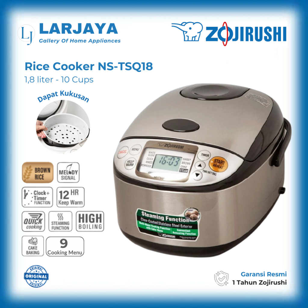 Zojirushi Rice Cooker Digital 1,8 Liter (10 Cups) Fuzzy Logic NS-TSQ18 XJ Stainless