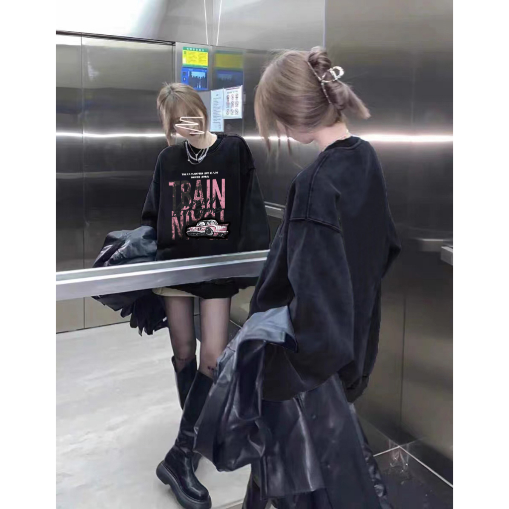 sweater oversize baju lengan panjang Sweatshirts hip hop retro katun murni wanita top