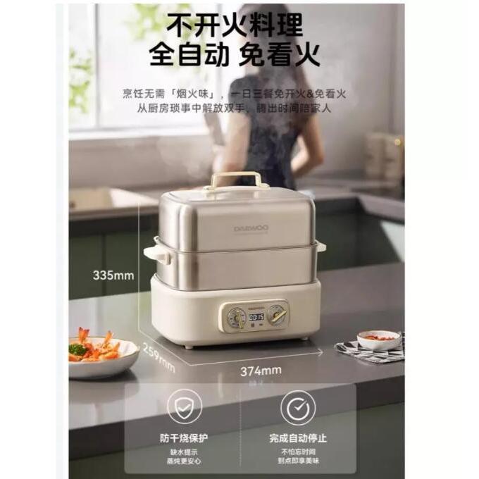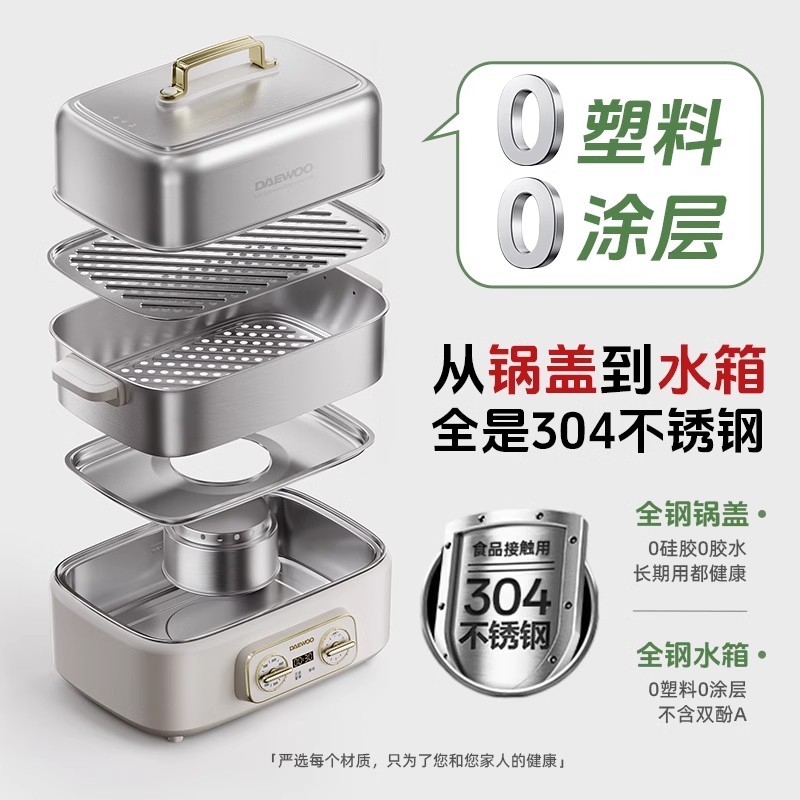 Daewoo electric steamer stainless steel household multi-functional three-layer large-capacity intelligent reservation fu