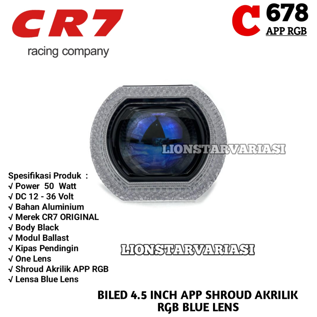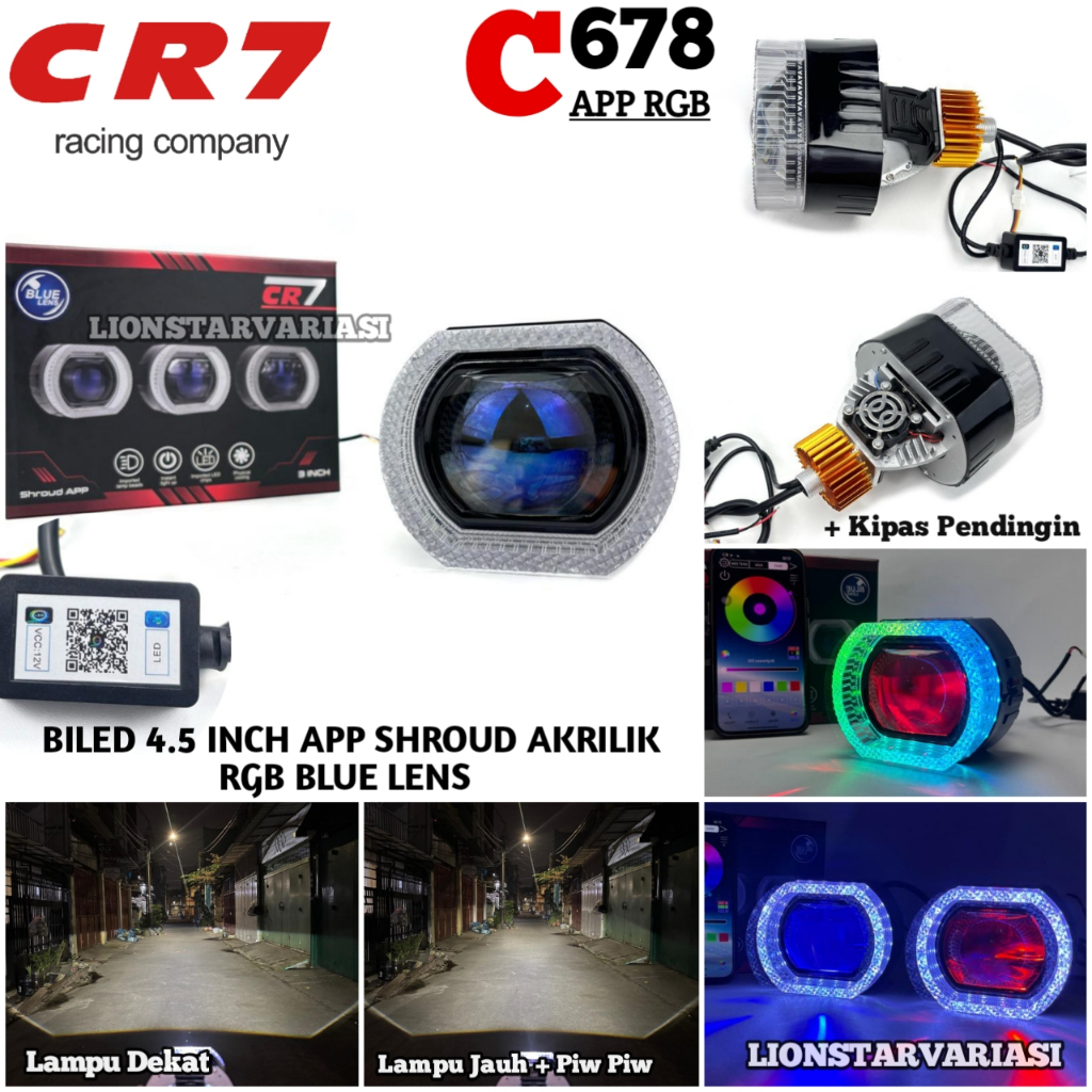 CR7 C678 - Projie Biled RGB 4.5 Inch Blue Lens Plus Devil Kipas Shroud Akrilik APP High Low Piw Piw