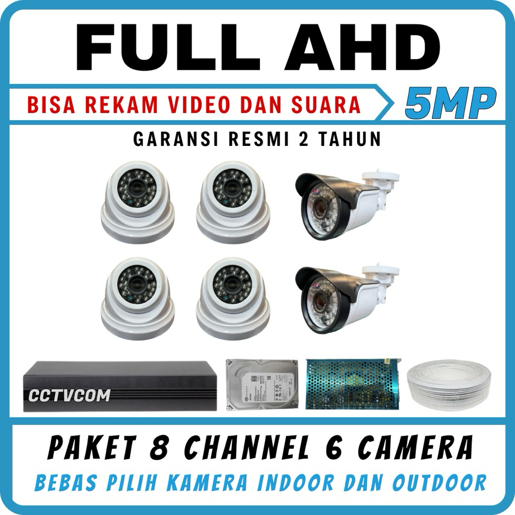 PAKET CCTV FULL AHD 8 CHANNEL 6 CAMERA 5MP 1080P KOMPLIT TINGGAL PASANG WIFI OUTDOOR V380PRO SAMBUNG KE HP TERLARIS
