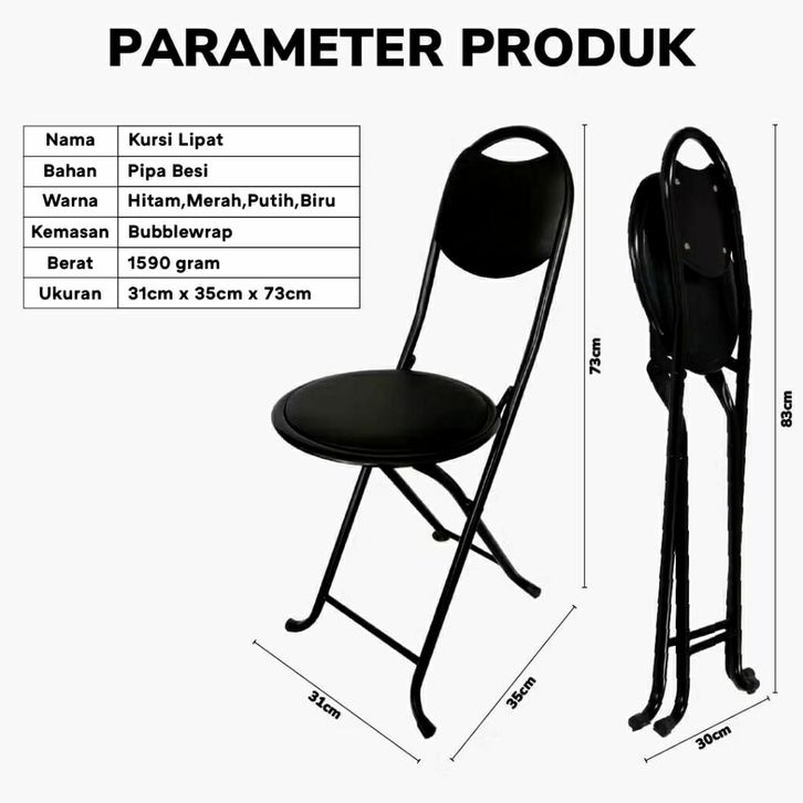 NEW Bangku Lipat Sholat Kursi Ibadah Lansia - Hitam Pipa Besi Stainless udohr