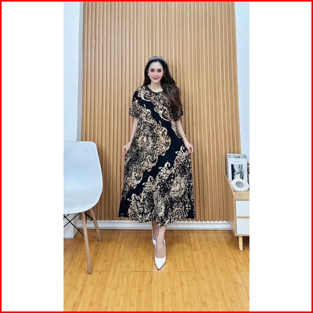 Daster Wanita Kekinian Batik Cap Malaman Motif Viral Terbaru Busui Lengan Pendek Rempel Bawah Rayon Premium Grade A