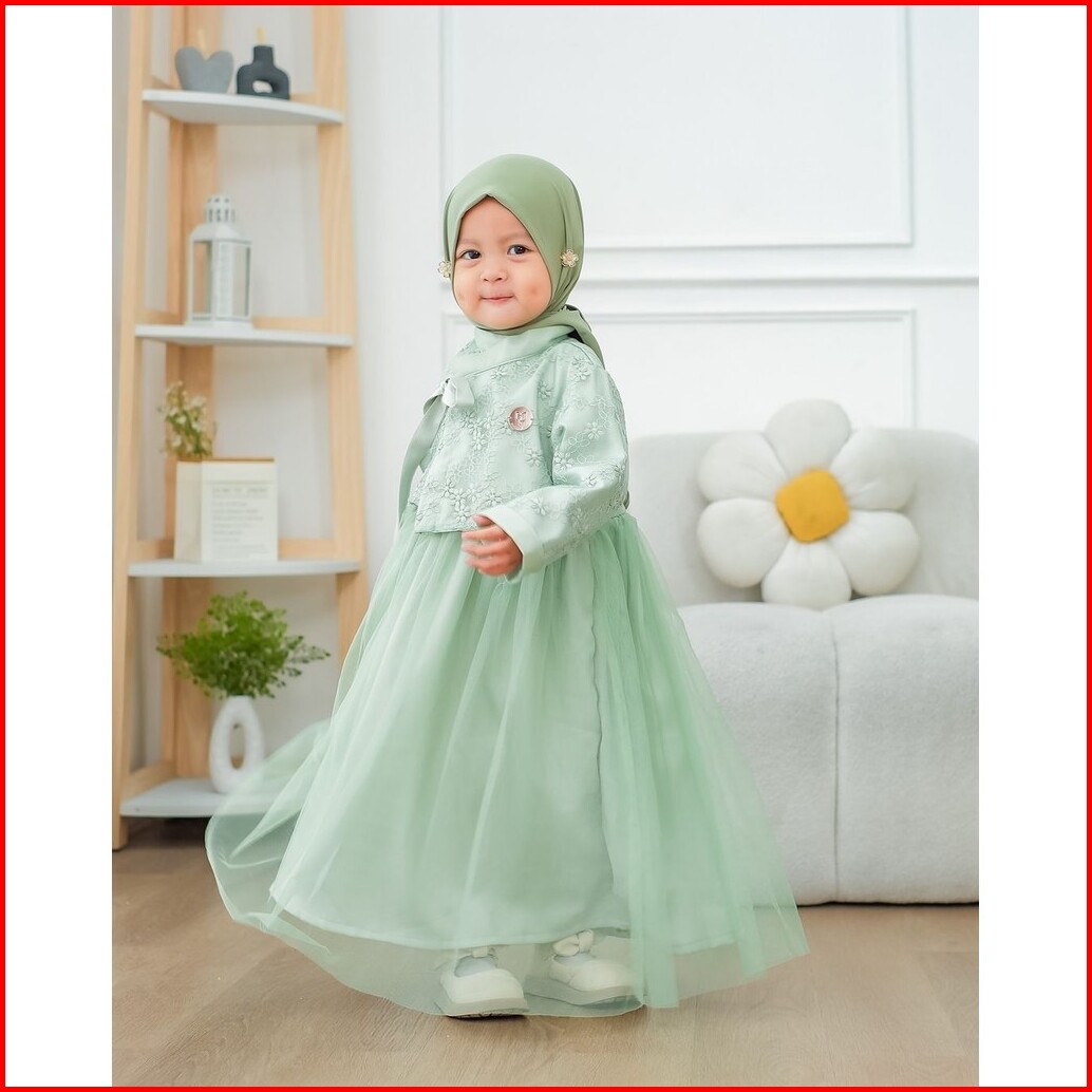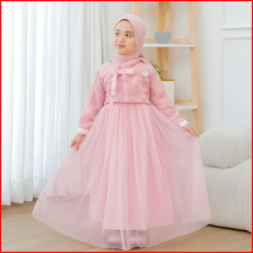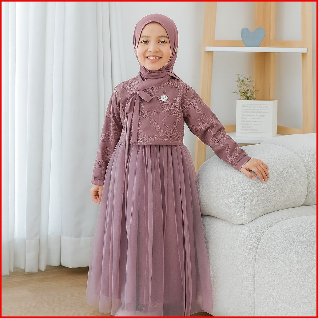 Vallina Outfit - Mafaza Kids Gamis Muslim Anak Perempuan 9 - 10 Thn Satin Velvet Mix Tille Premium Ootd Lebaran