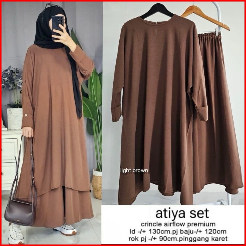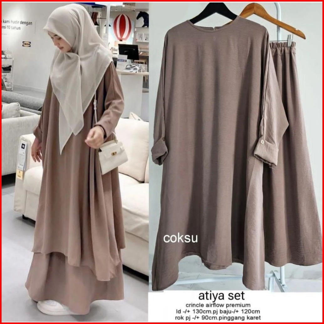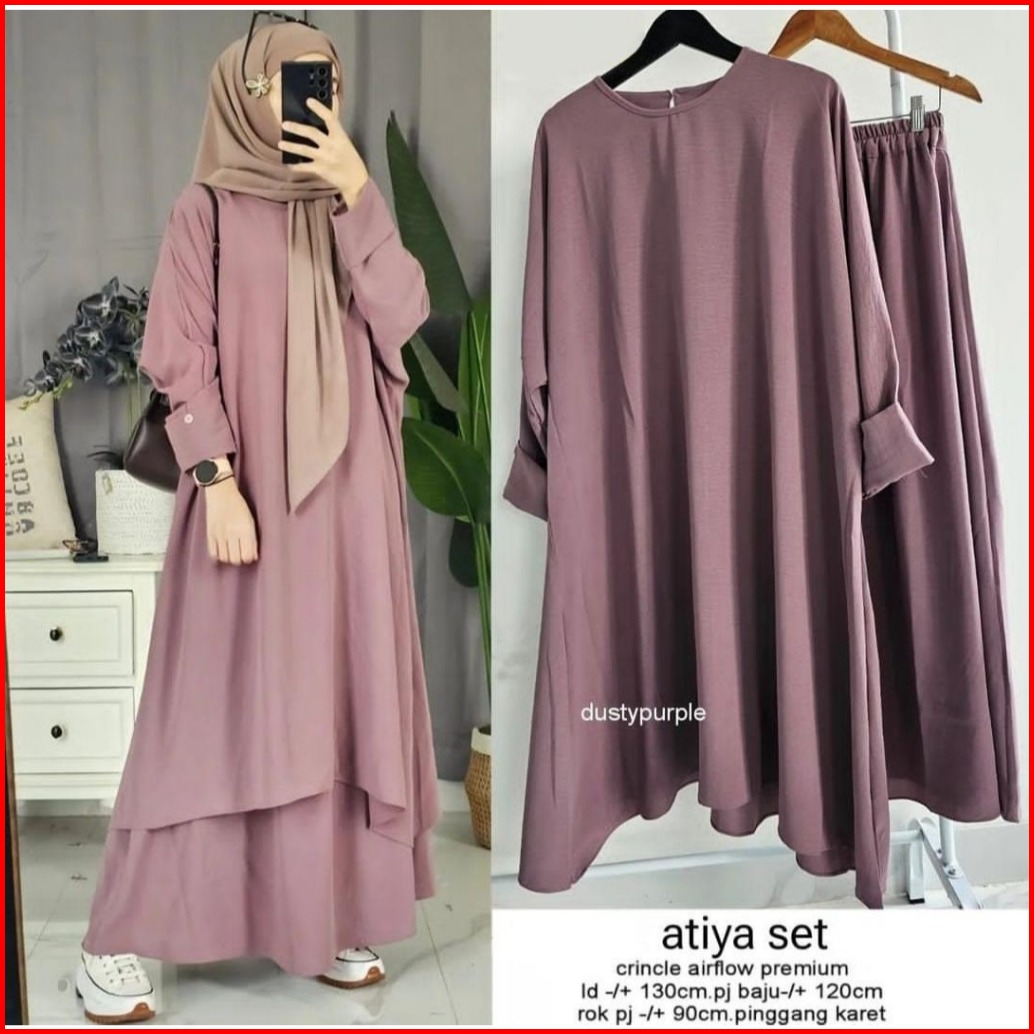 Femes Theana One Set 2in1 Wanita Muslim Matt Cringkle Airflow Polos Basic Ootd Lebaran Casual Daily