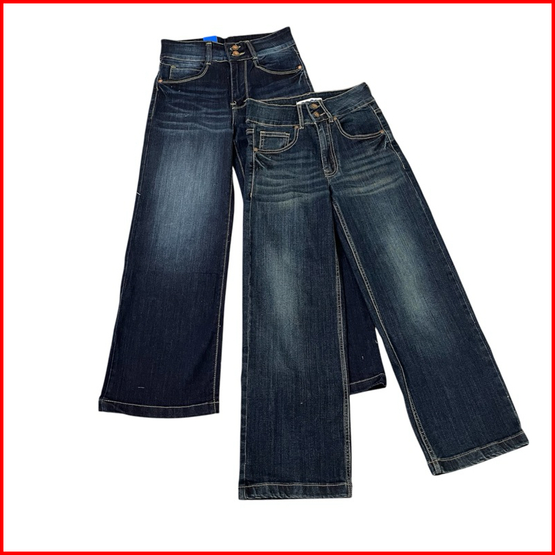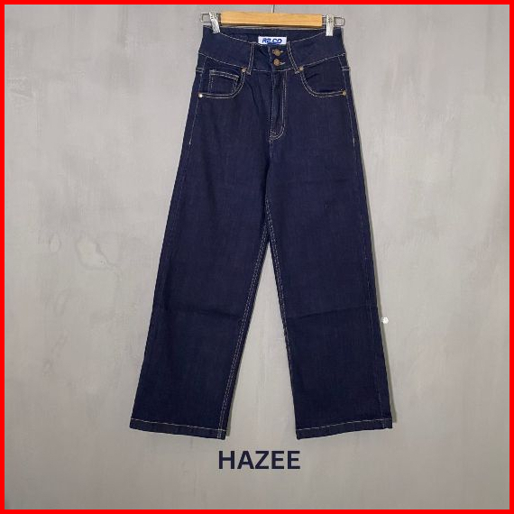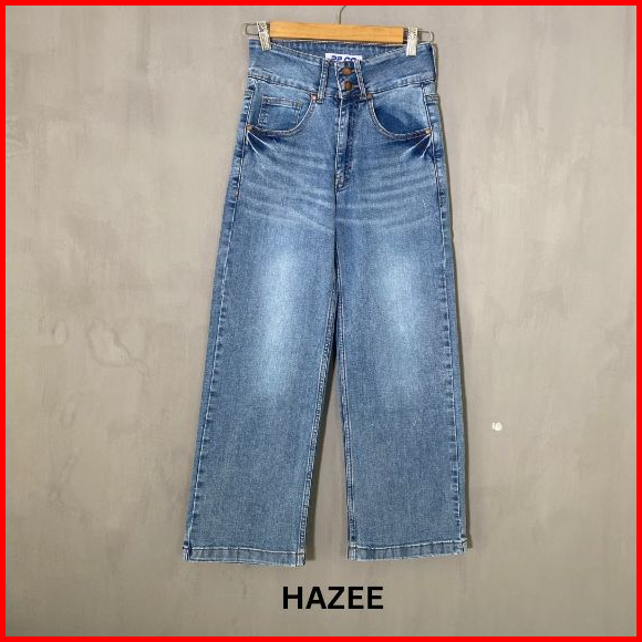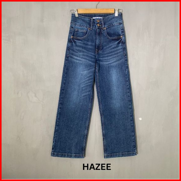 Hazee - Naura Celana Jeans Wanita Kulot Highwaist Kancing 2 Bahan Melar Premium Denim