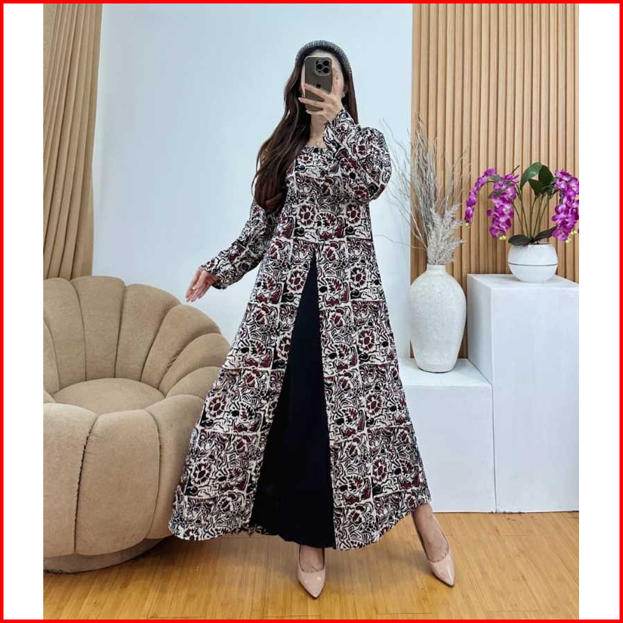 Batik Tamala Sekdress Cap Lengan Panjang Klok A Daster Rayon Busui Ukuran Ld 110 Kekinian Terbaru