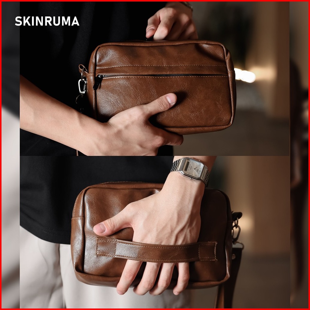 Skinruma Handbag Pattynama Exclusive Premium Leather Coklat Tas Kulit Pria Multifungsi Clutch Bag Tas Selempang