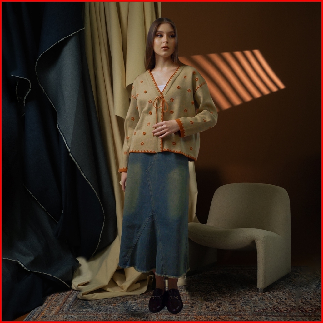 Yesyou Fleur Cream Cardigan Katun Rajut Boxy Fit
