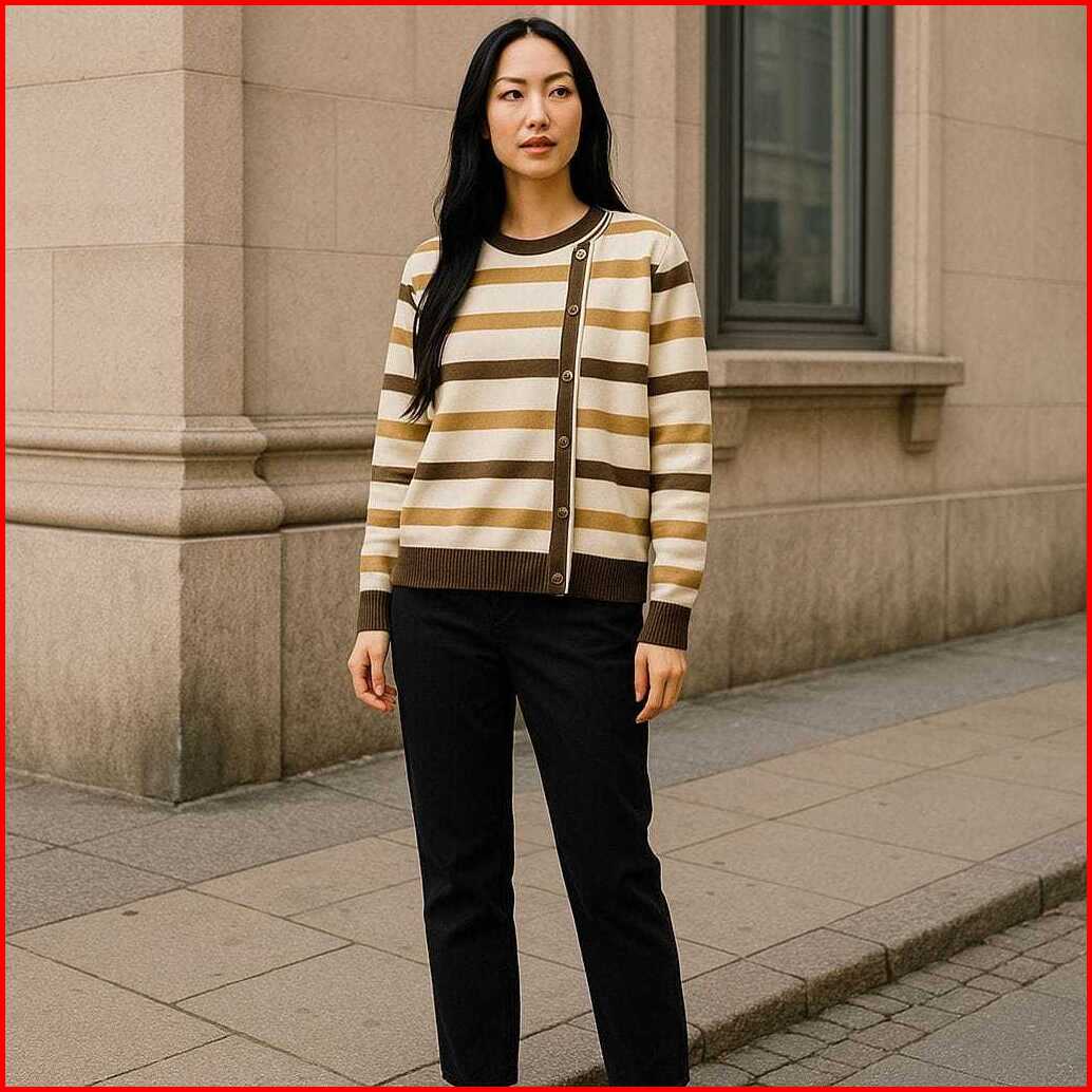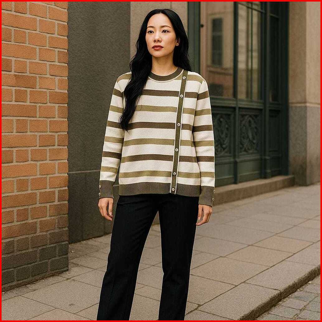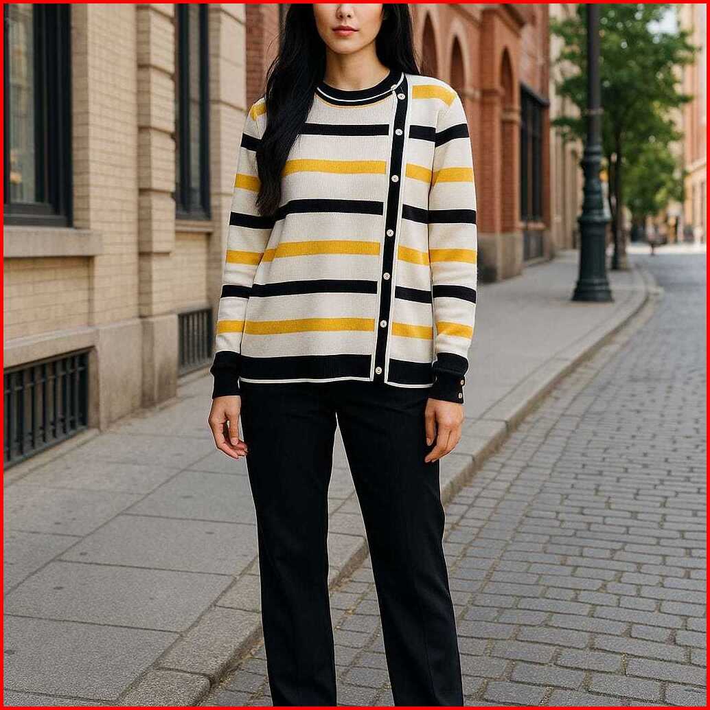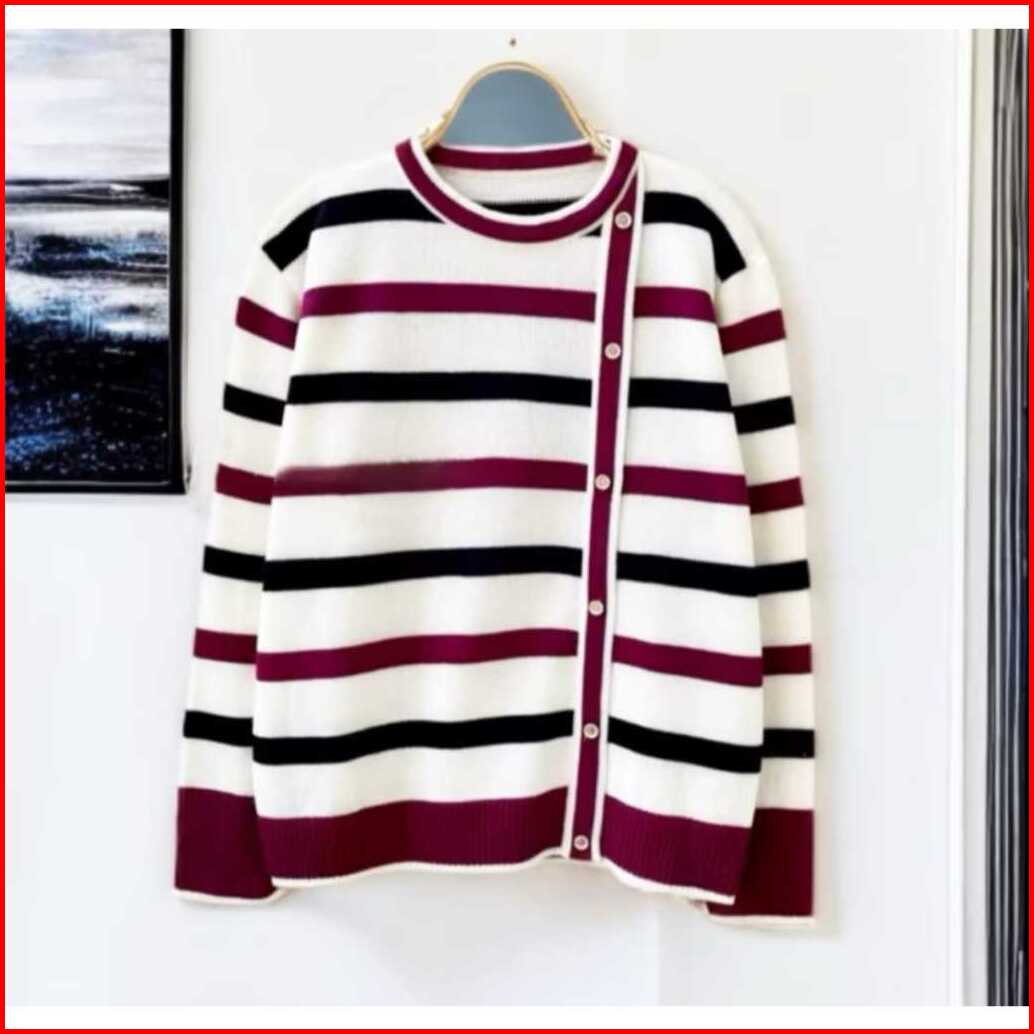 Delima Sweater Atasan Rajut Wanita Motif Stipe Variasi Kancing Pinggir Korean Style Oversize - Terlariss