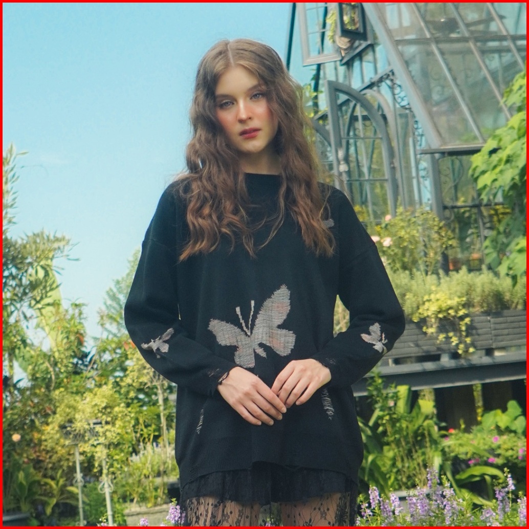 Yesyou Morpho Black Oversized Reversible Knitwear