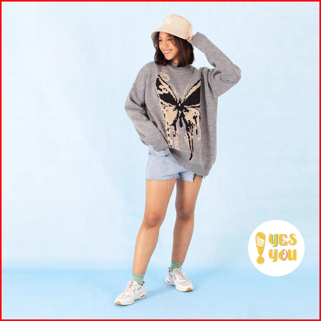 Yesyou Butterfly Misty Grey Oversized Knitwear