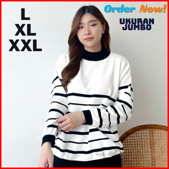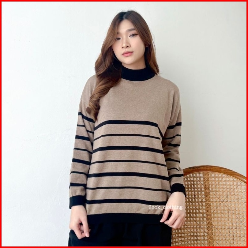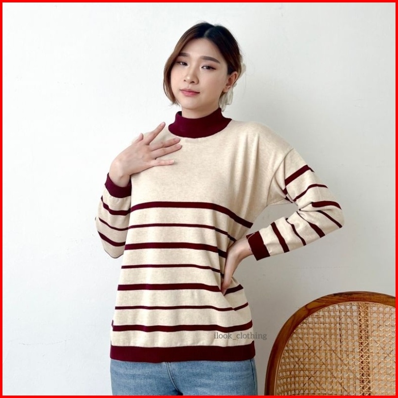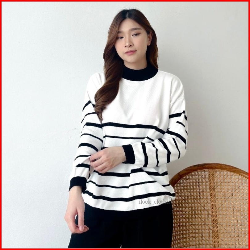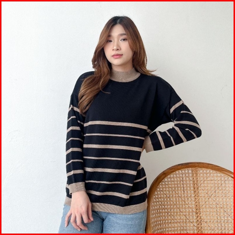 Atasan Rajut Wanita Jumbo Garis Lengan Panjang Korean Style - Friday Knit Tops Oversize