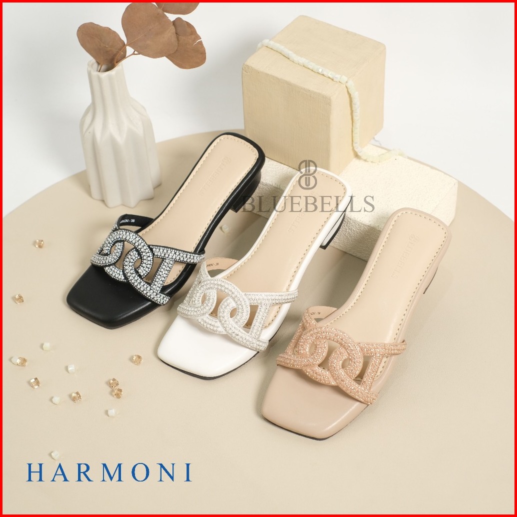 Bluebells Harmoni Sendal Slop Wanita Heels 3cm Elegan Tersedia Size 36-44