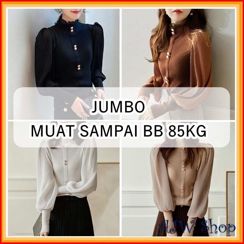 Ajw Jumbo Sampai Bb 85kg Turtleneck Atasan Rajut Lengan Panjang Mewah Dan Elegan Atasan Turtleneck Style Wanita Lengan P