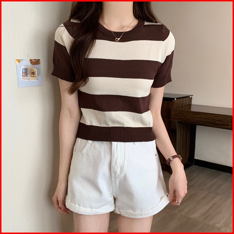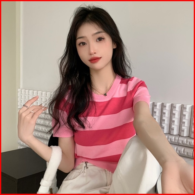 Ajw Kaos Rajut Salur Besar Wanita Import Lengan Pendek Hah Atasan Rajut Salur Tebal Import Wanita Lengan Pendek Baju Raj