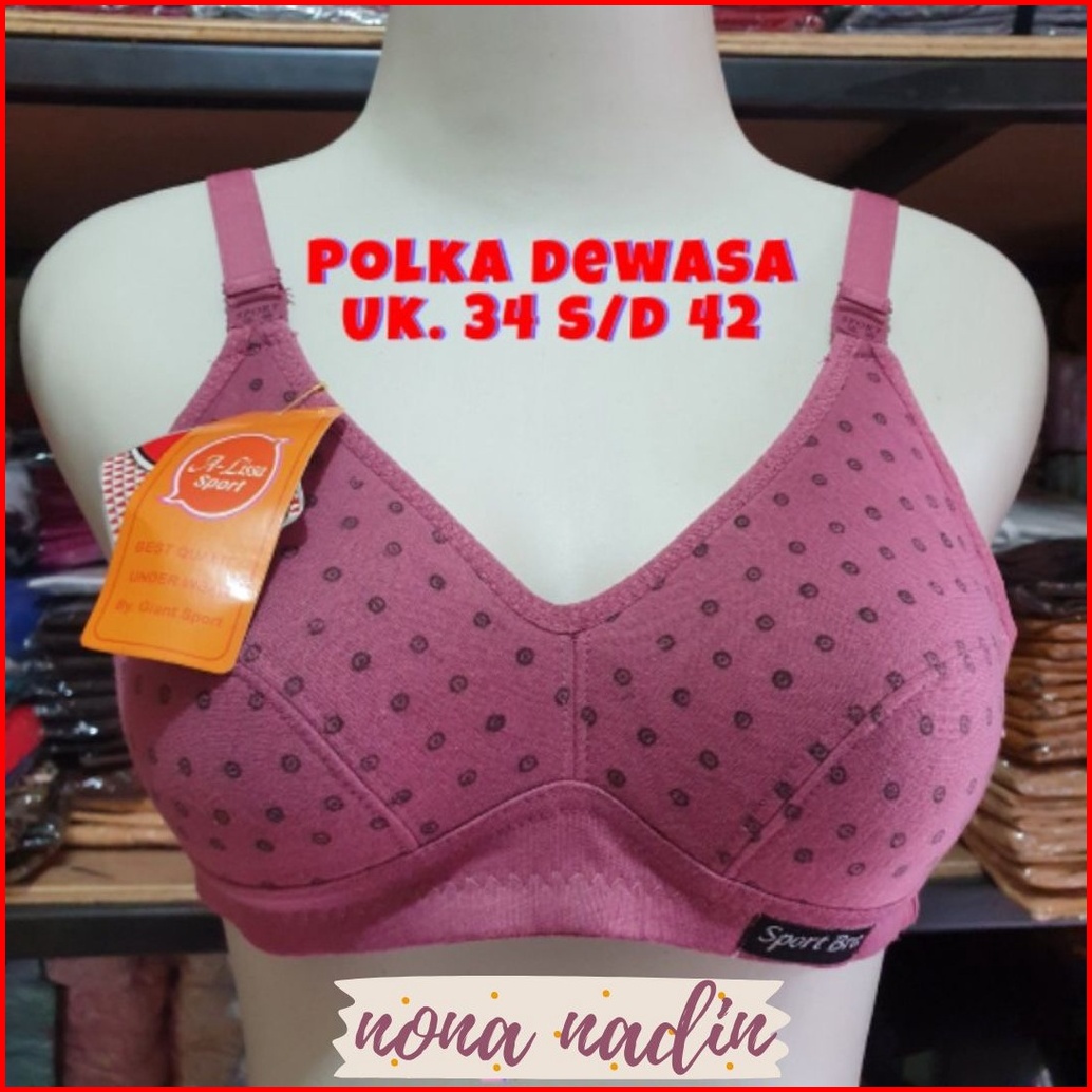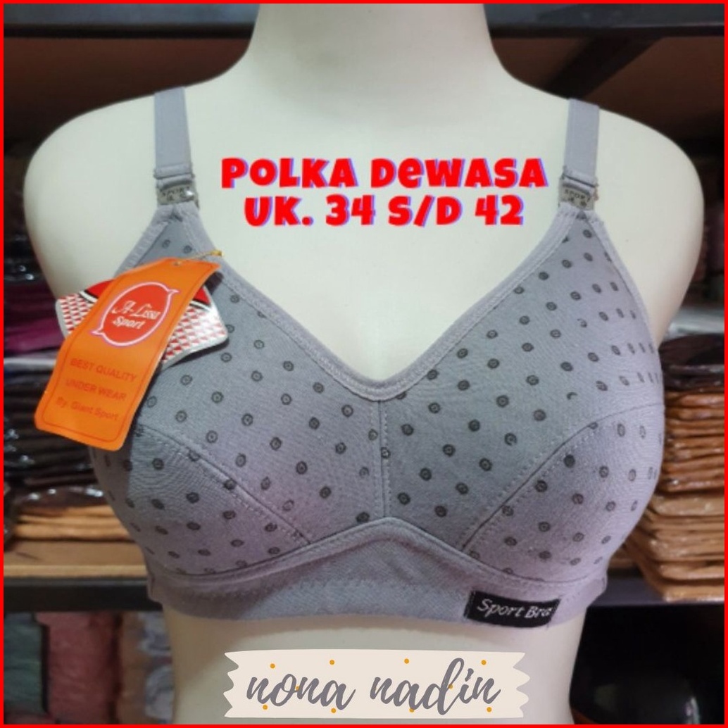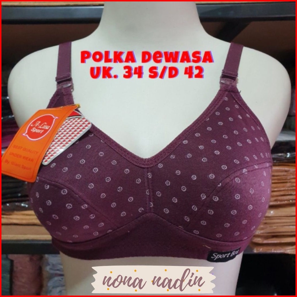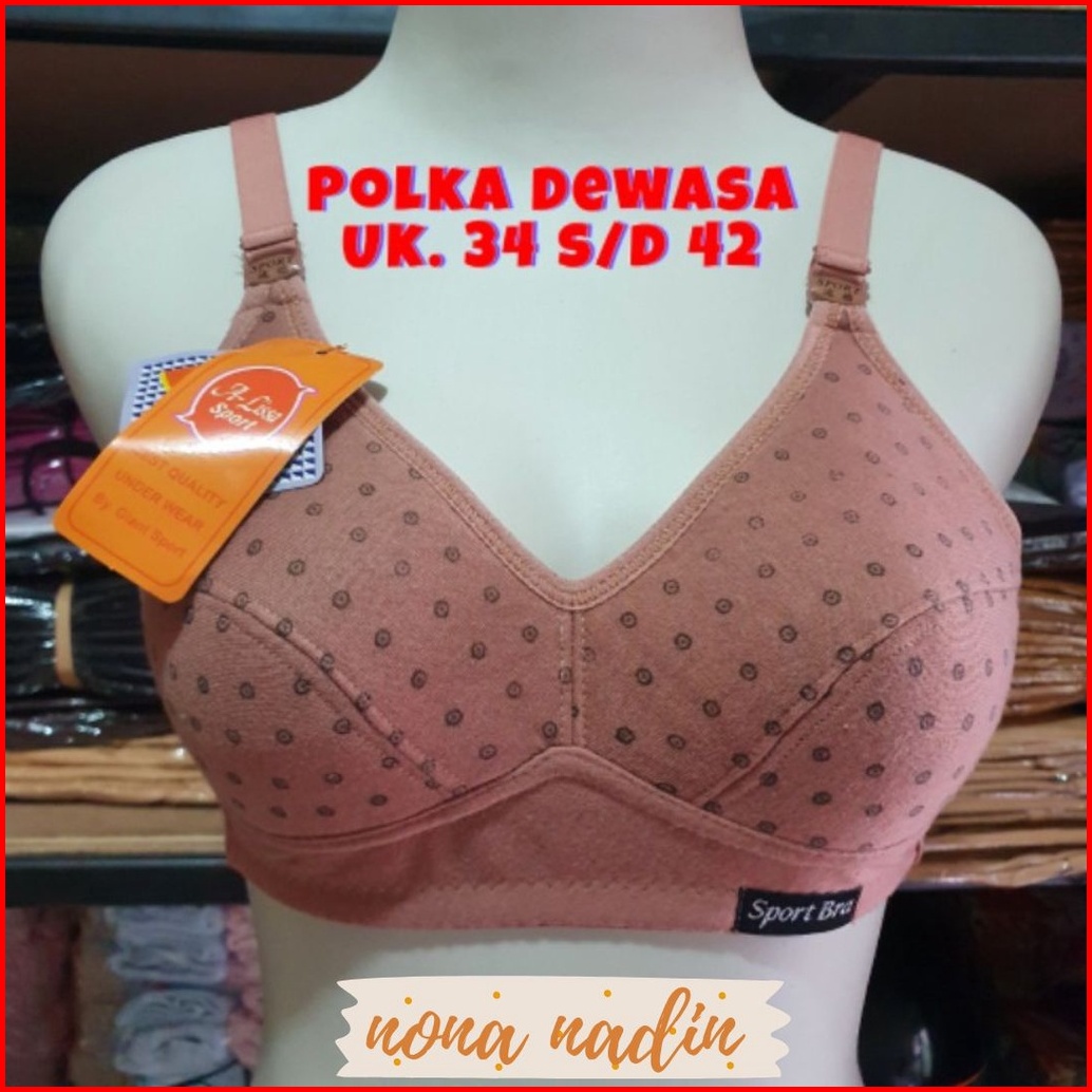 Paket Isi 3 Pcs Sport Bra Dewasa Motif Polkadot Tanpa Kawat Tanpa Busa