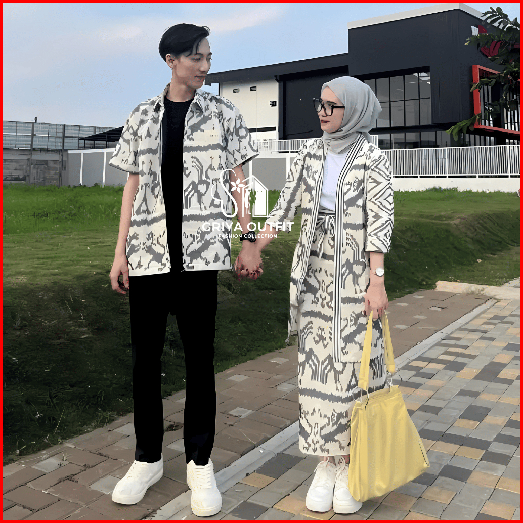 Setelan Couple Gamis Tenun Couple Raya Midnight Baju Kemeja Dress Pria Wanita Modern By Ntt
