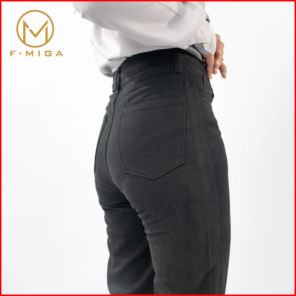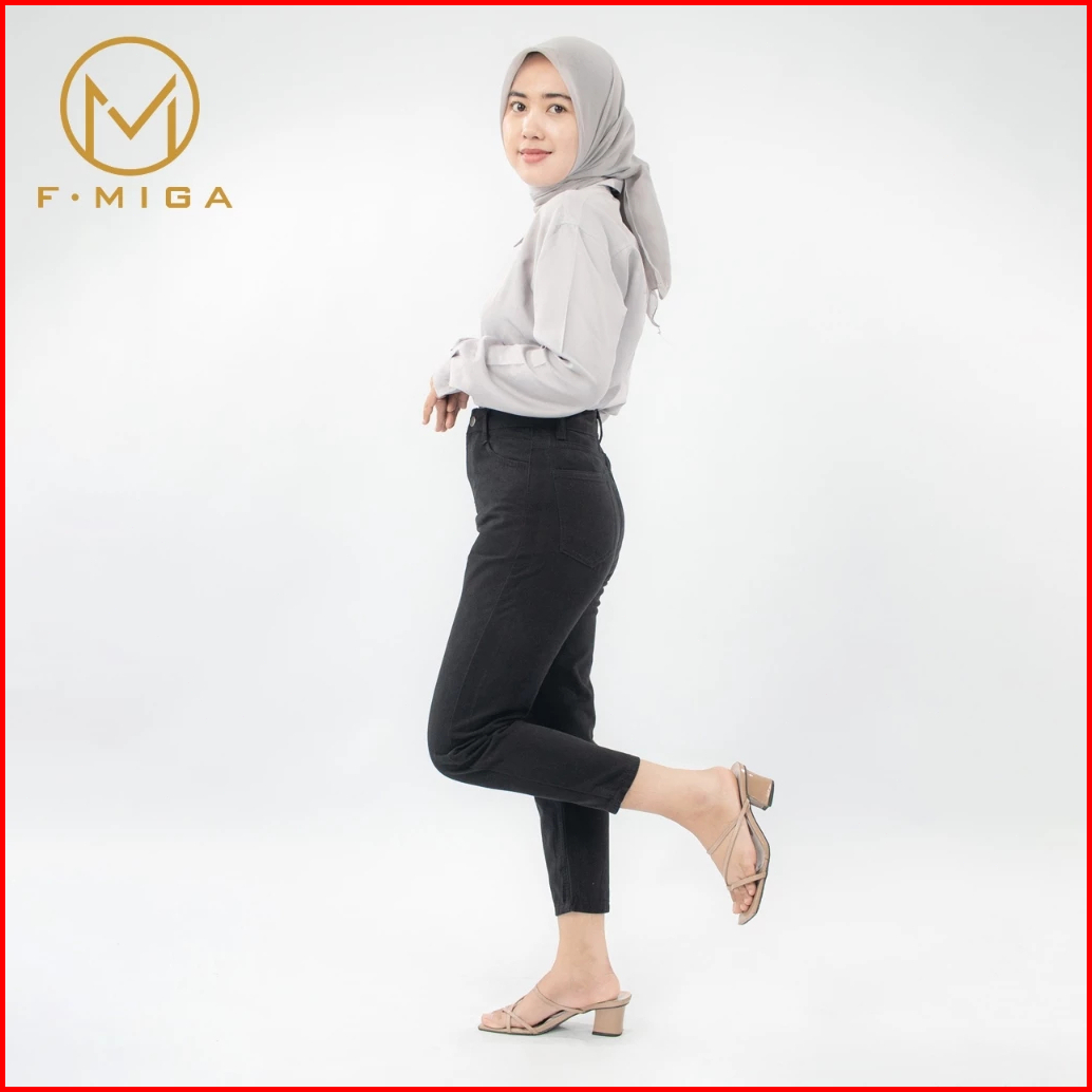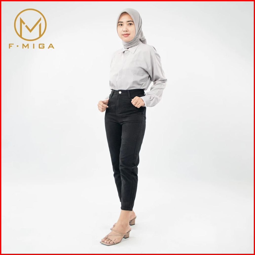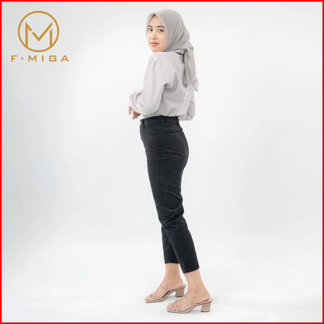F Miga C189 Korean Style High Waist Loose Celana Panjang Kasual Pants Wanita - Hitam