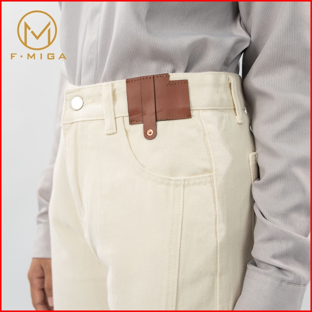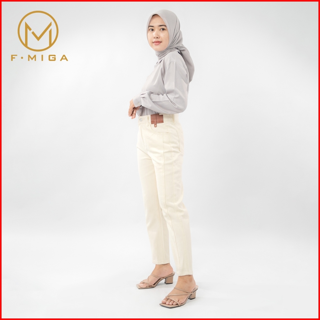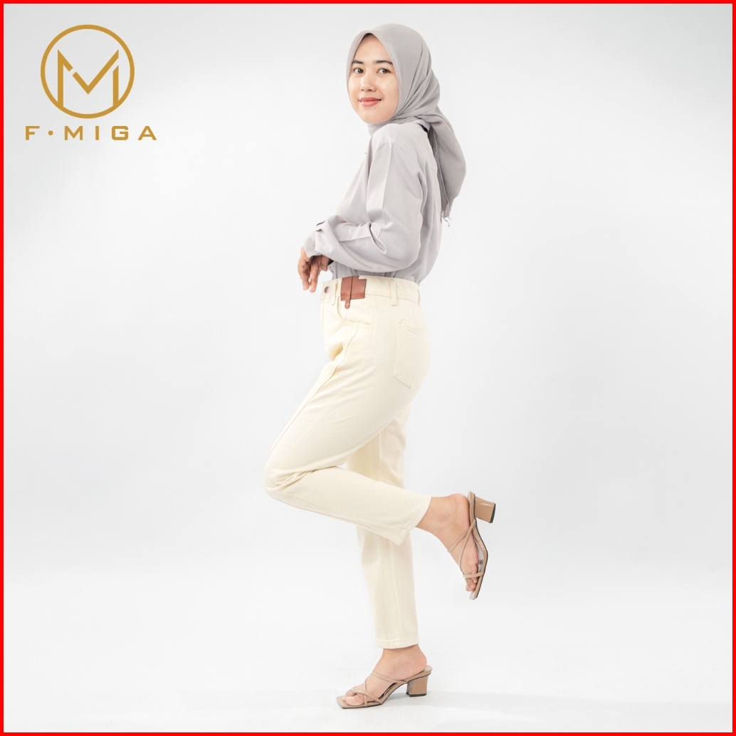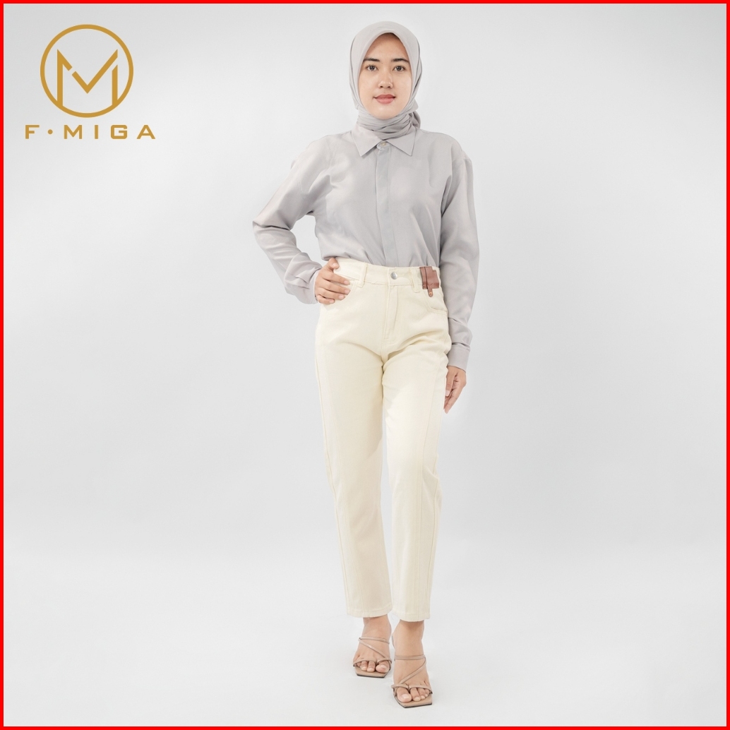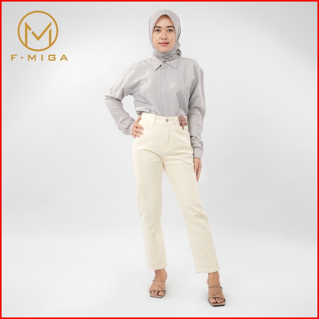 F Miga C183 Highwaist Celana Jeans Panjang Wanita Korean Style Kasual Straight Jeans - Beige