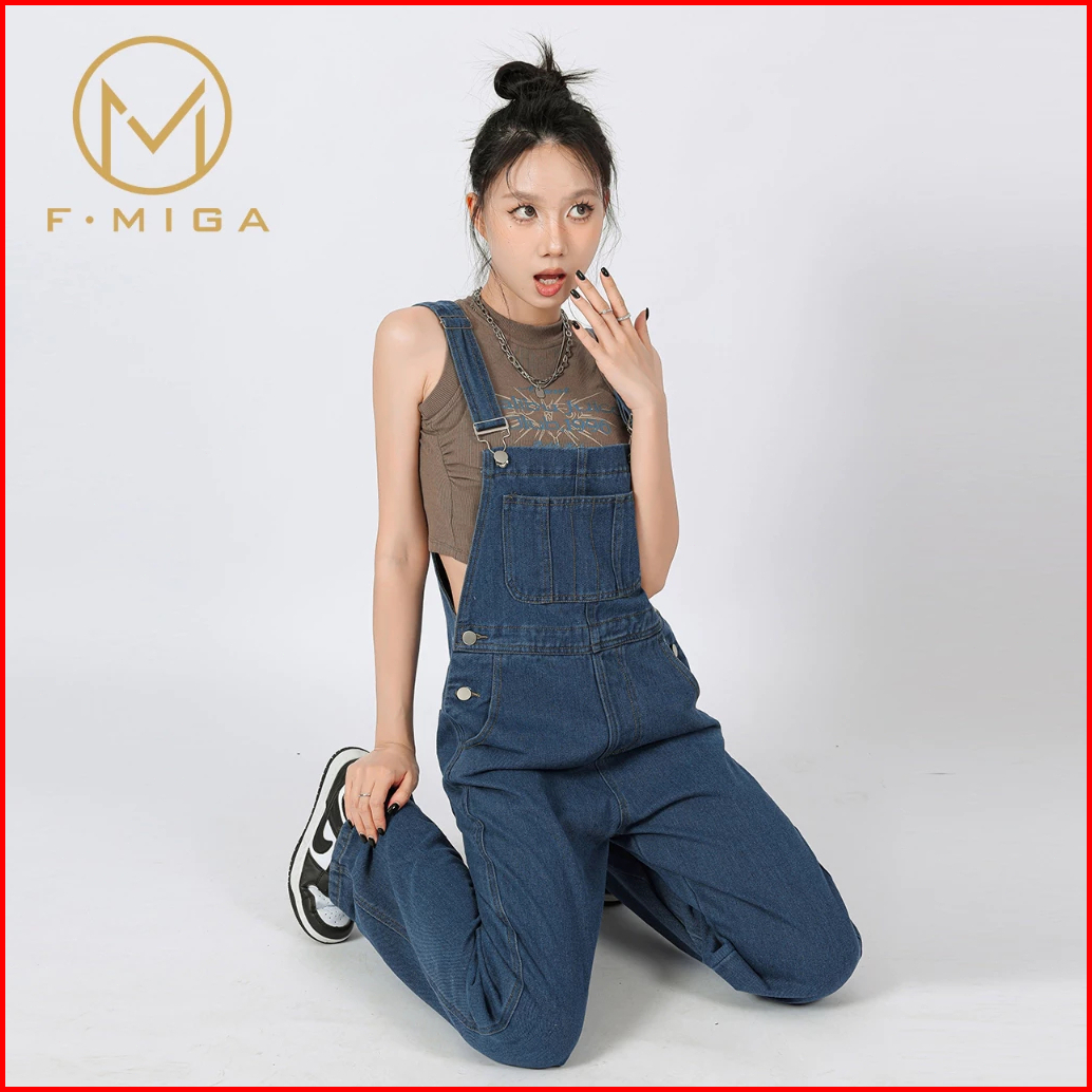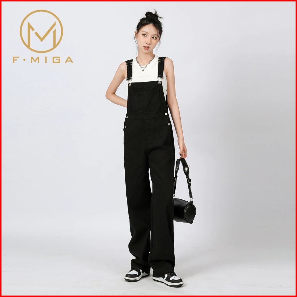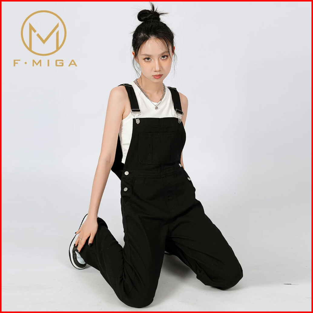 F Miga C51 C52 Playsuit Overall Jeans Wanita Kodok - Black