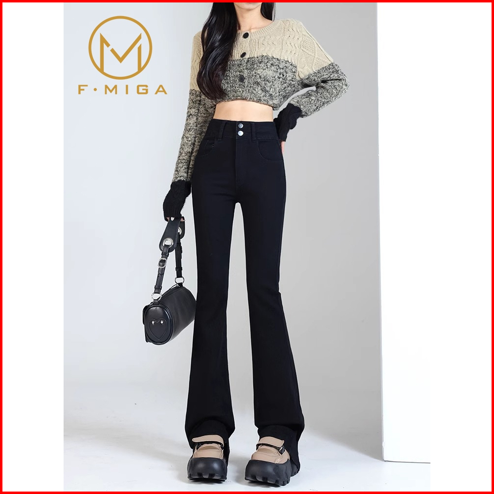 F Miga C173 Korean Style Highwaist Stretch Flare Celana Jeans Wanita Panjang - Hitam