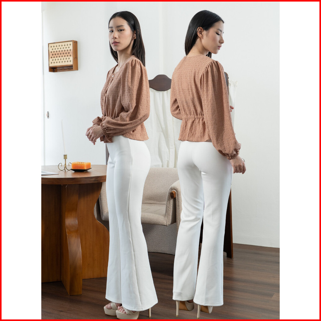 Ada - Dena Blouse Knit Baloon Sleeves With Half Button 2h67