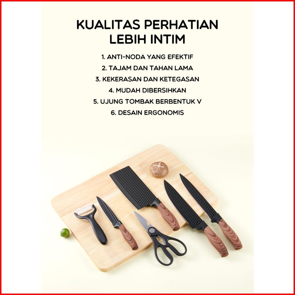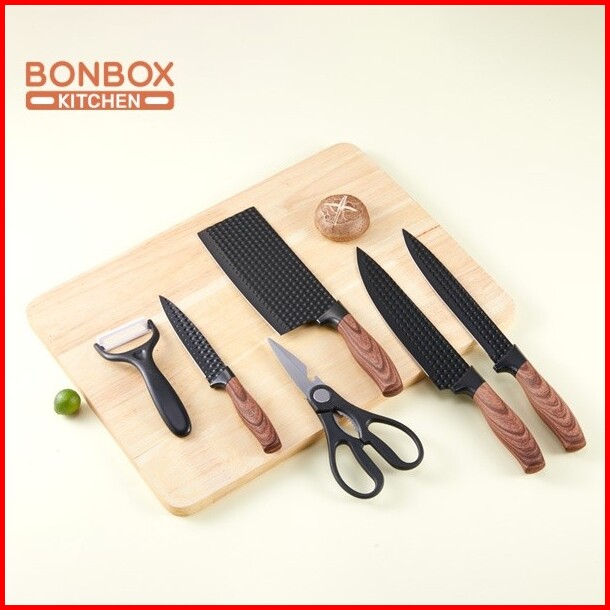 Bonbox Kitchen - Pisau Set Isi 6 Pcs Multifungsi Tajam Tahan Karat Pisau Dapur Kotak Gift Set Dengan Peeler Pengupas - P