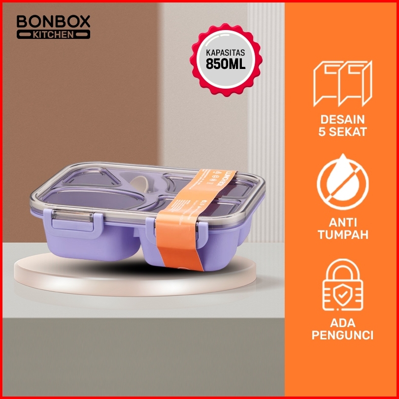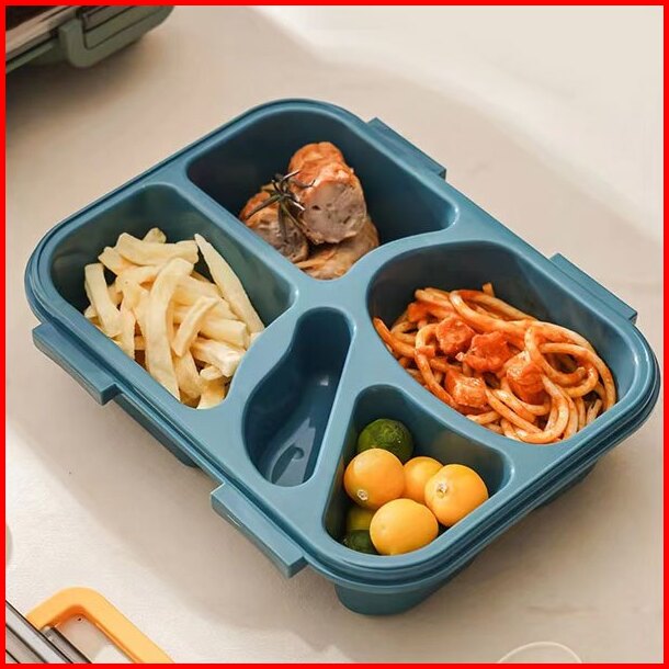 Kotak Makan 4 Sekat Lunch Box Susun Microwaveable Food Grade Material Plastik Dengan Alat Makan Microwaveable Btw21201