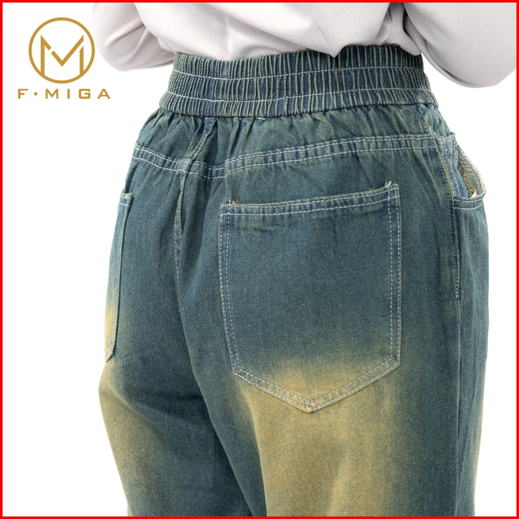 F Miga C188 Korean Style Straight Loose Celana Kulot Pinggang Karet Panjang Jeans Wanita Bagy - Biru