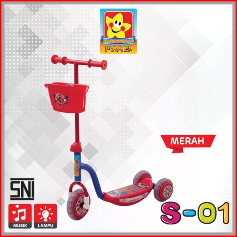 Skuter Roda Tiga Anak Pmb S01 Cat Otopet Auto Start Stop Ic Music N Light