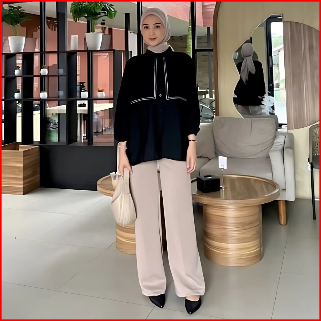 Vallina Outfit - Triana Blouse Shakila Layer Atasan Wanita Muslim Matt Cringkle Premium Ootd Kantoran L Casual Daily