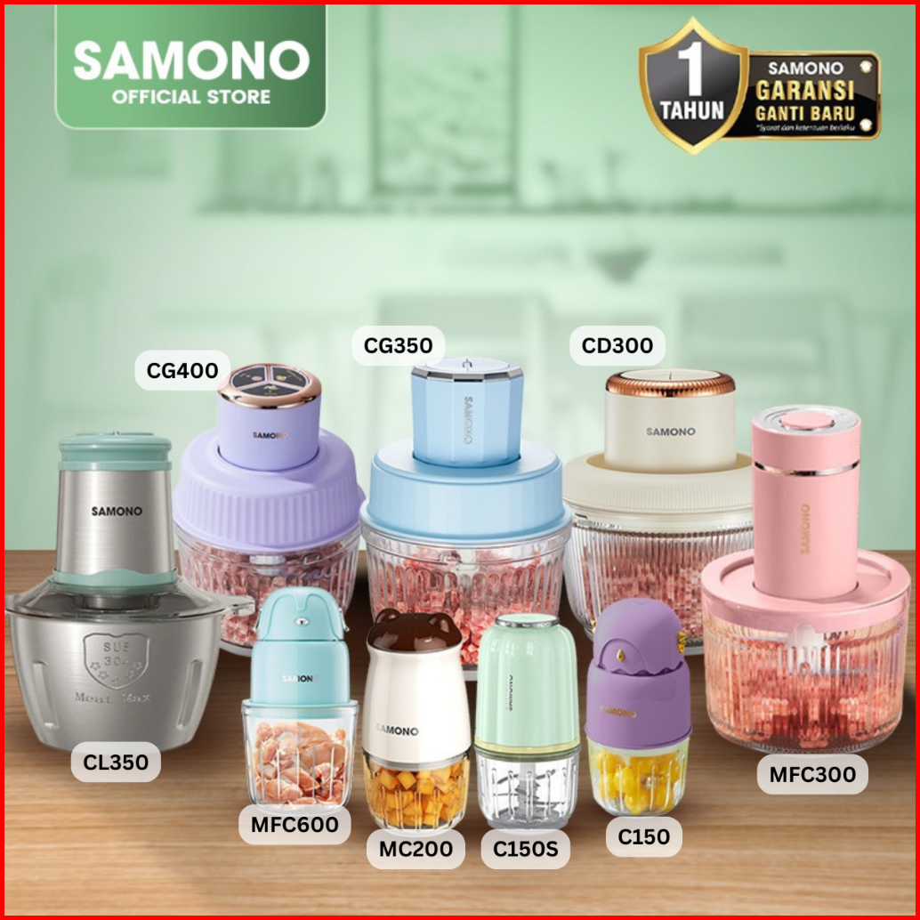 Samono Best Seller Chopper Low Watt Garansi Wadah Kaca Penghalus Daging Bumbu Buah Mpasi Meat Grinder Food Processor Ble