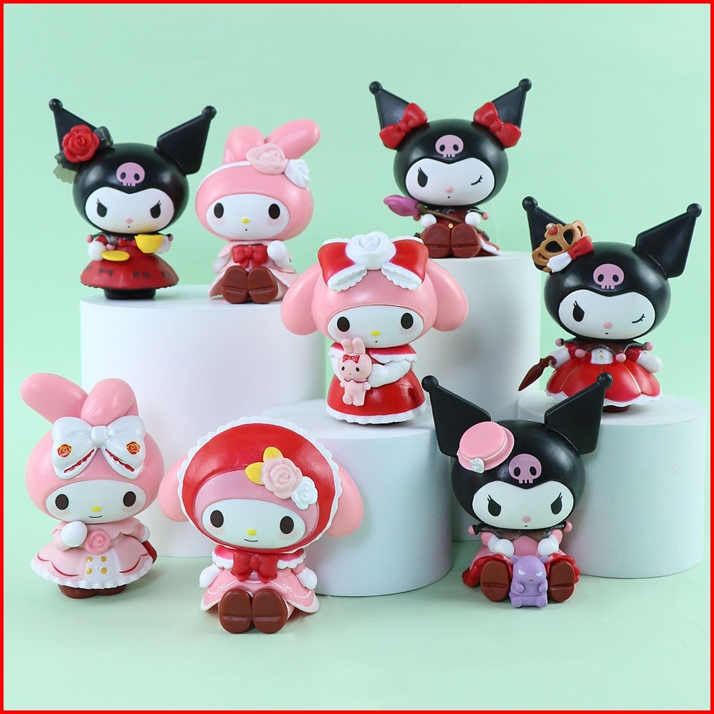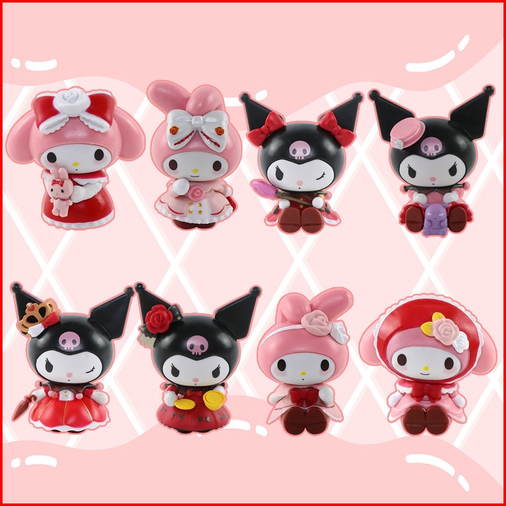 Set 8 Pcs Pajangan Action Figure Kuromi Melody Karakter Sanrio Blind Box Topper Cake Hadiah
