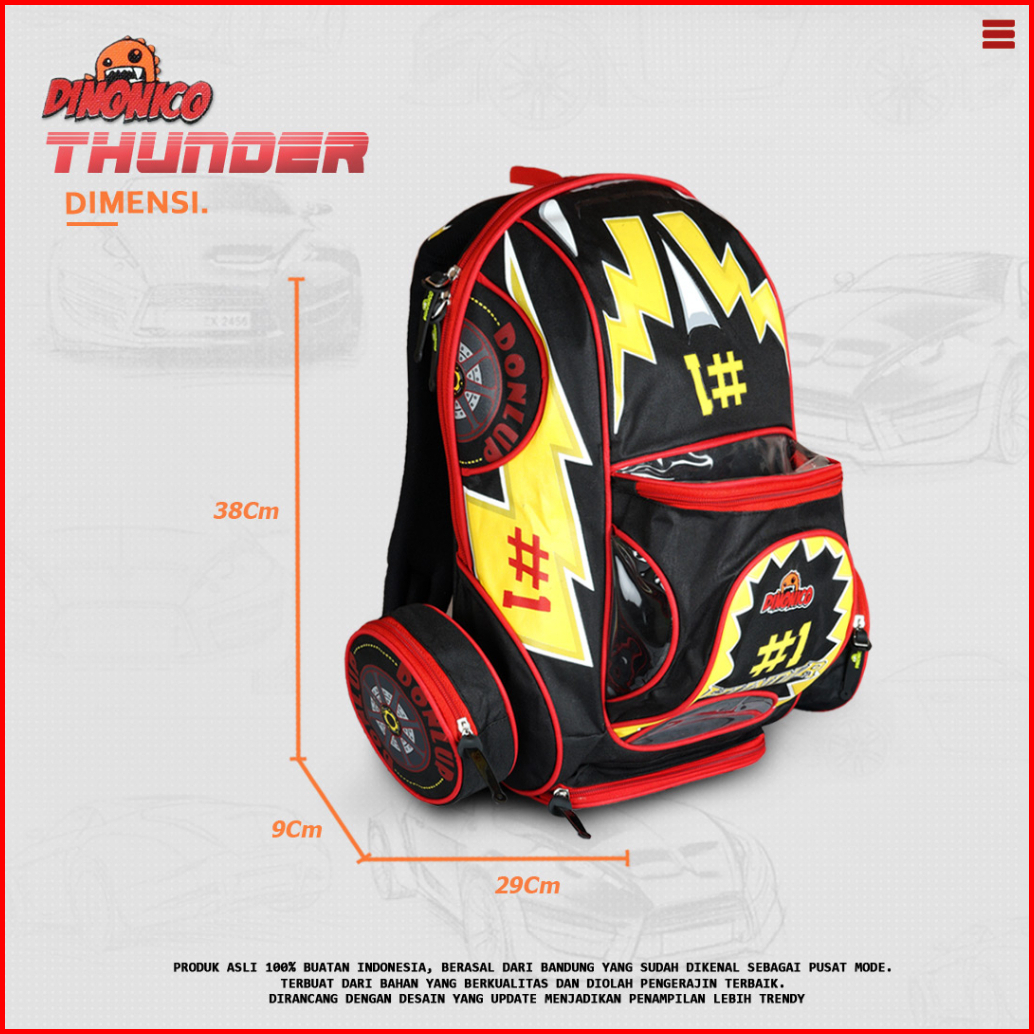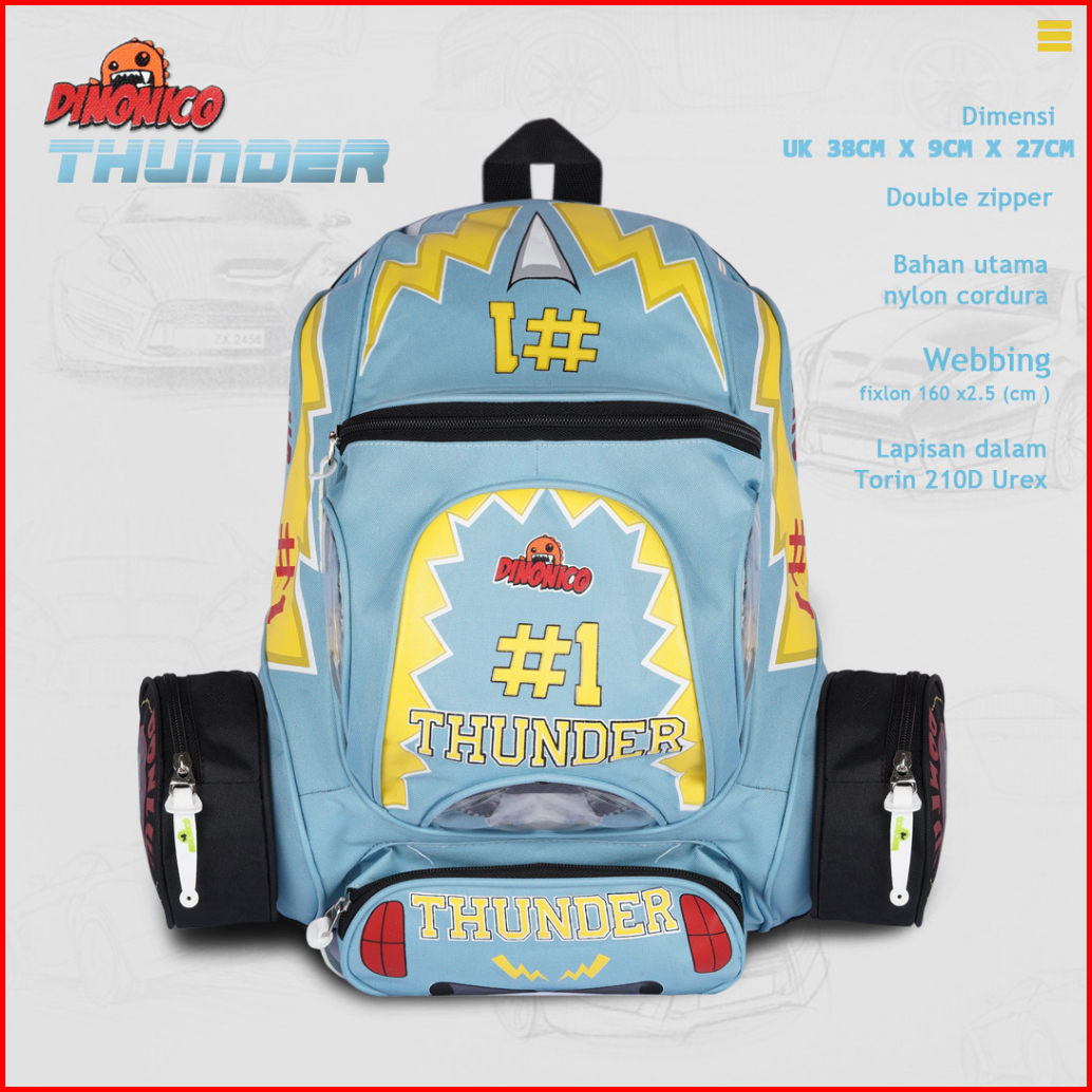 Tas Ransel Anak Karakter Mobil Thunder1 - Tas Anak Tk Sd