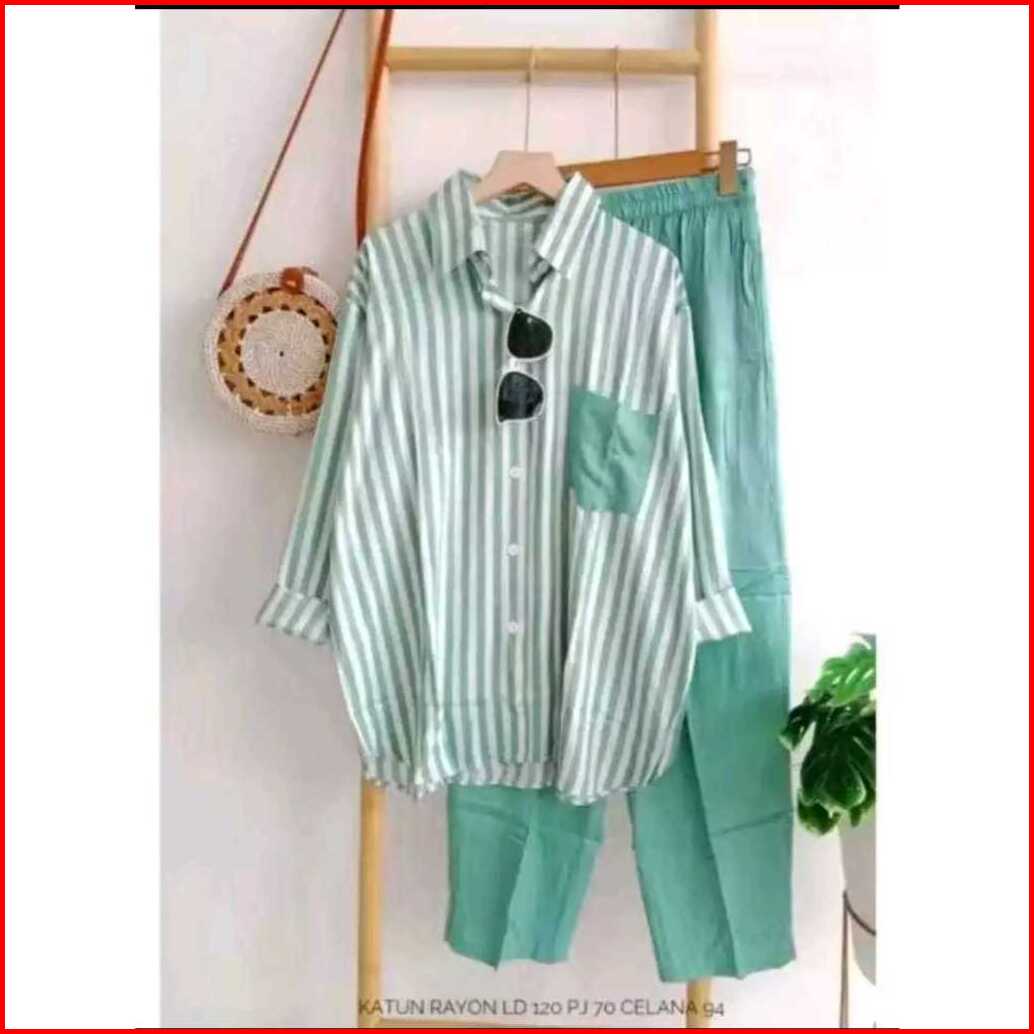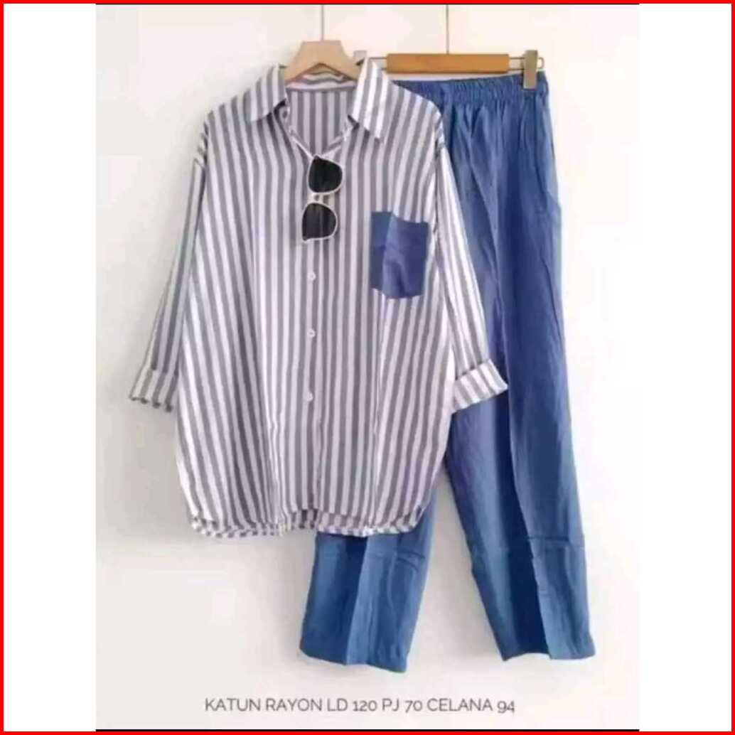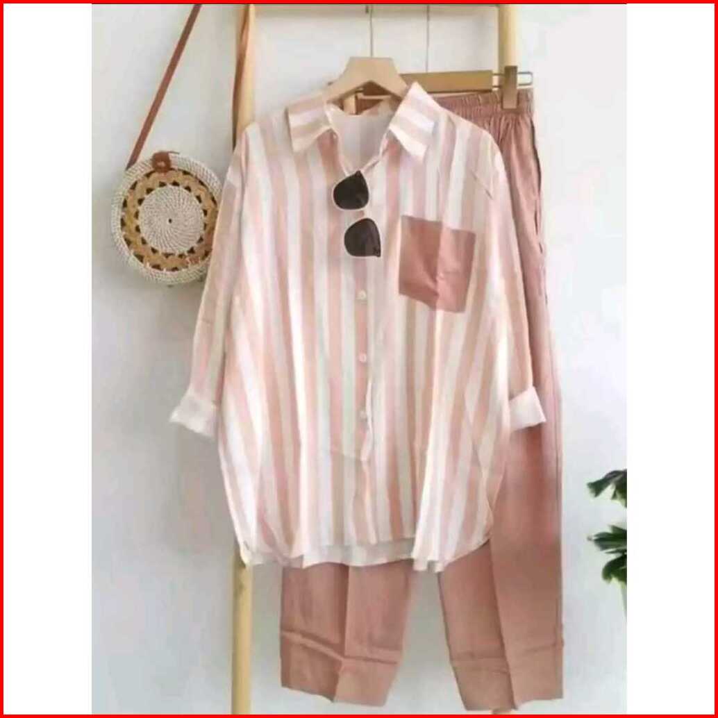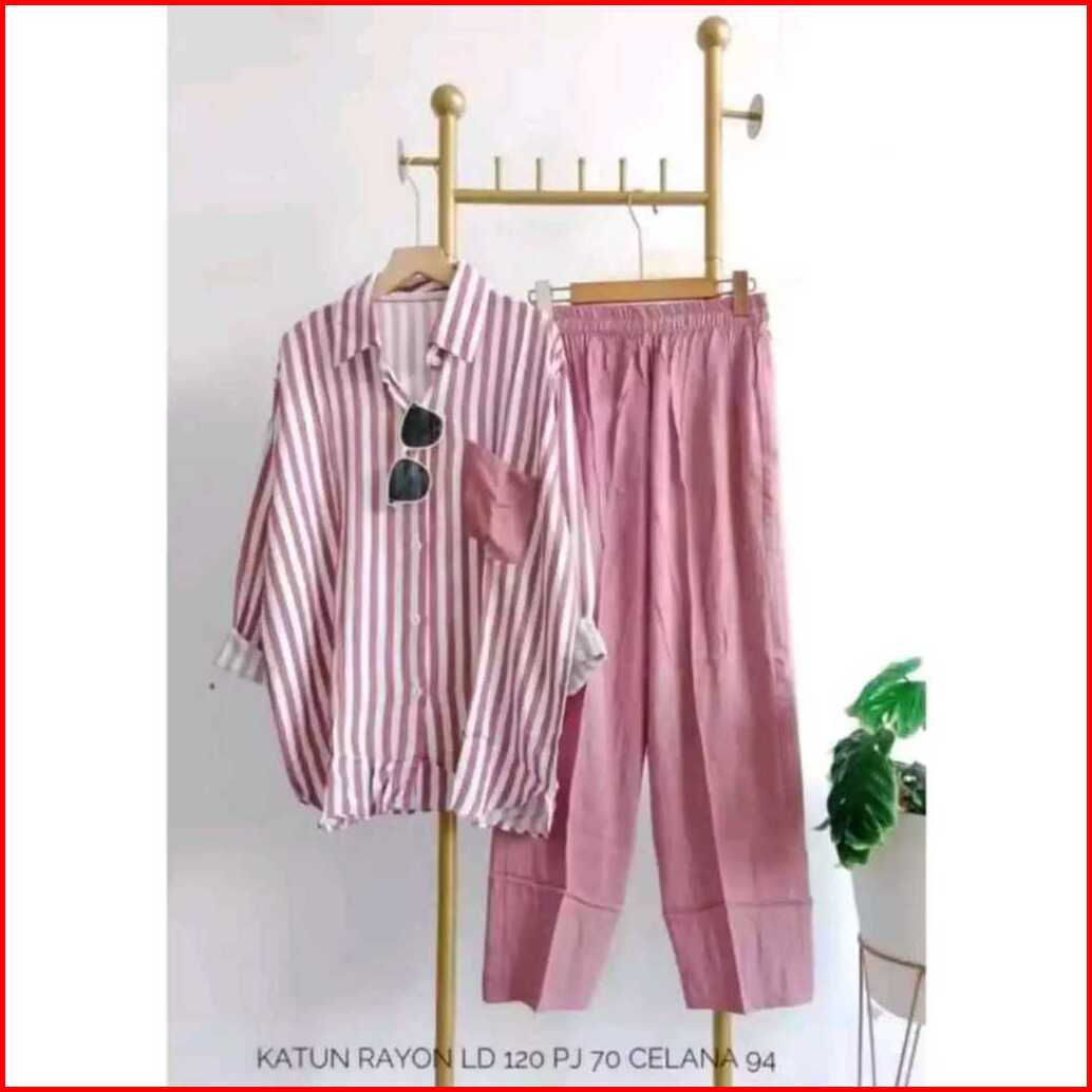 Miyra Outfit Setelan Wanita Motif Salur Set Wanita Terbaru One Set Penjamas Kekinian Termurah