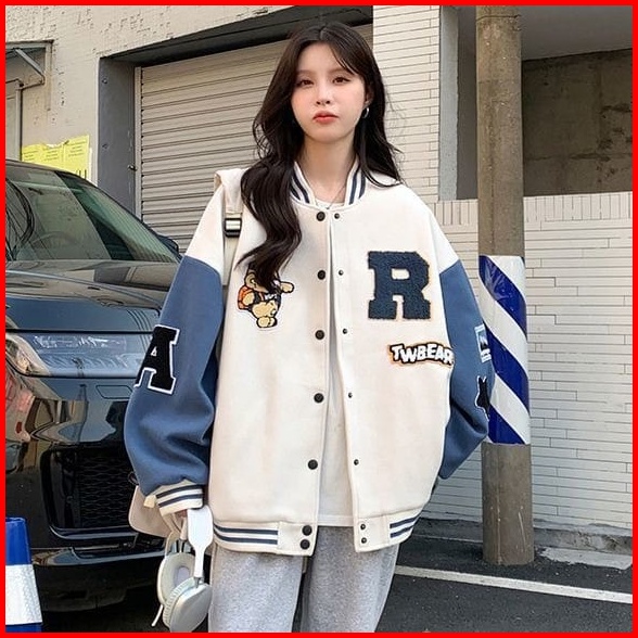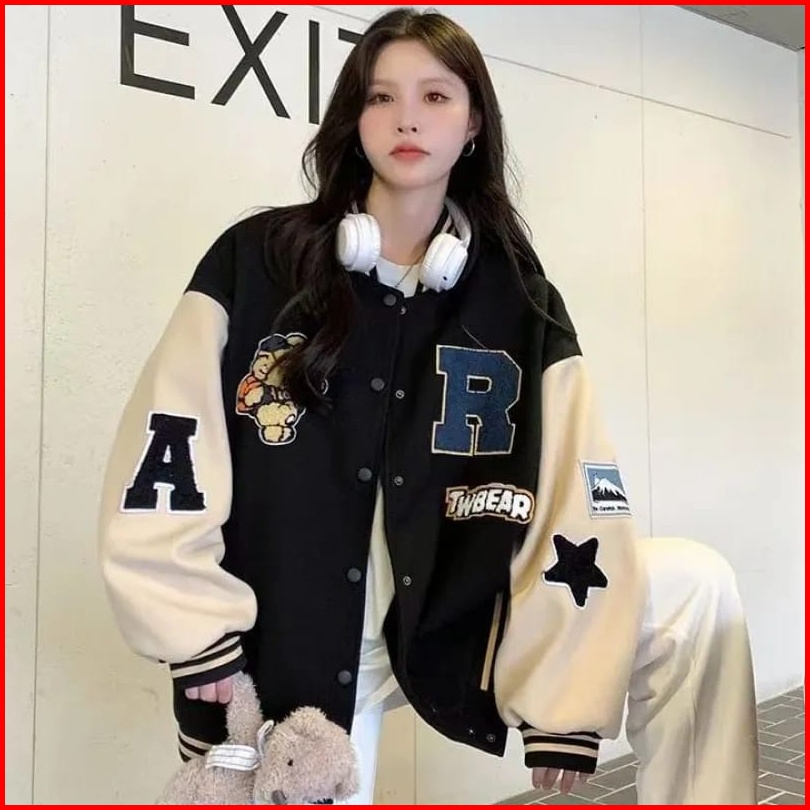 Femes R Tw Bear Jaket Baseball Outerwear Jacket Varsity Fleece Premium