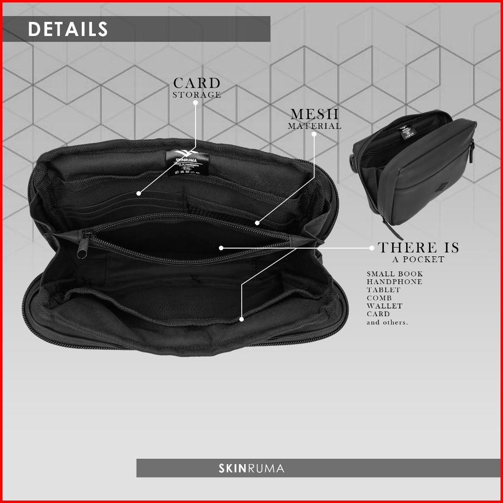 Skinruma Handbag Struick Exclusive Waterproof Black Tas Pria Multifungsi Anti Air Clutch Bag