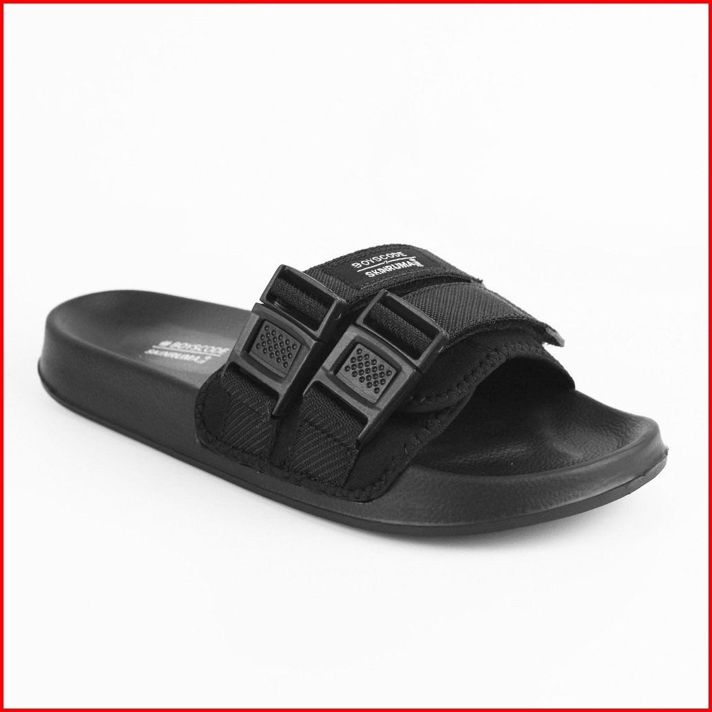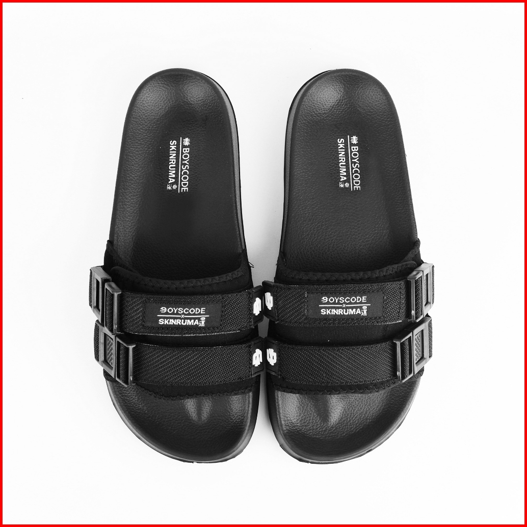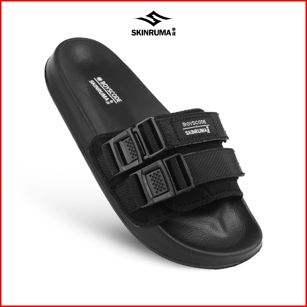 Skinruma Sendal Selop Karet Strap Distro Pria Wanita Ryota Hitam